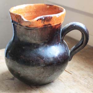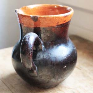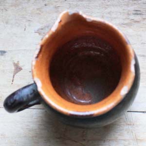100年ぐらい前の古いテラコッタ製のピッチャー。古いものなので欠けがあります。
