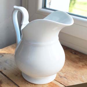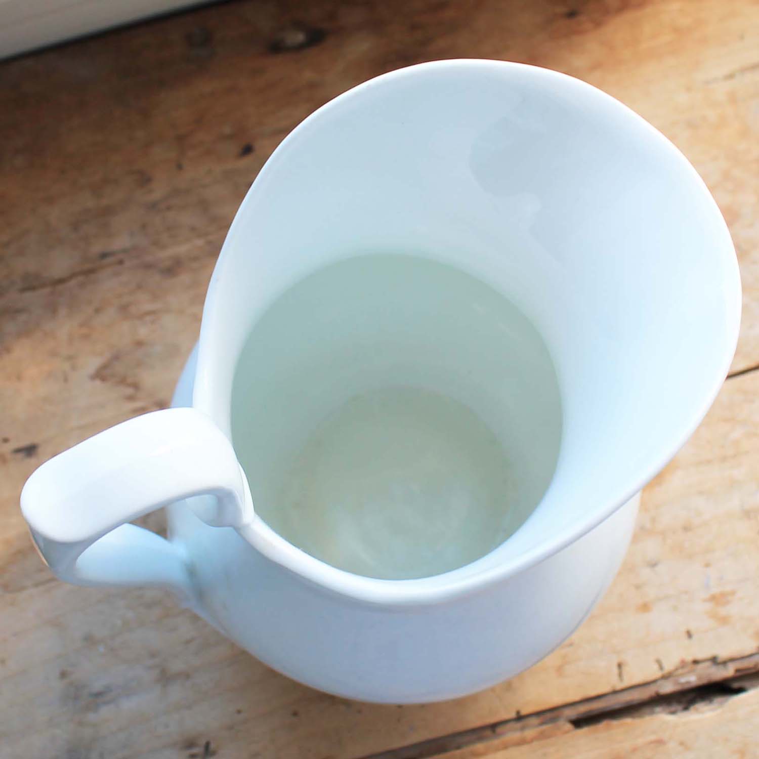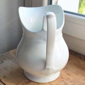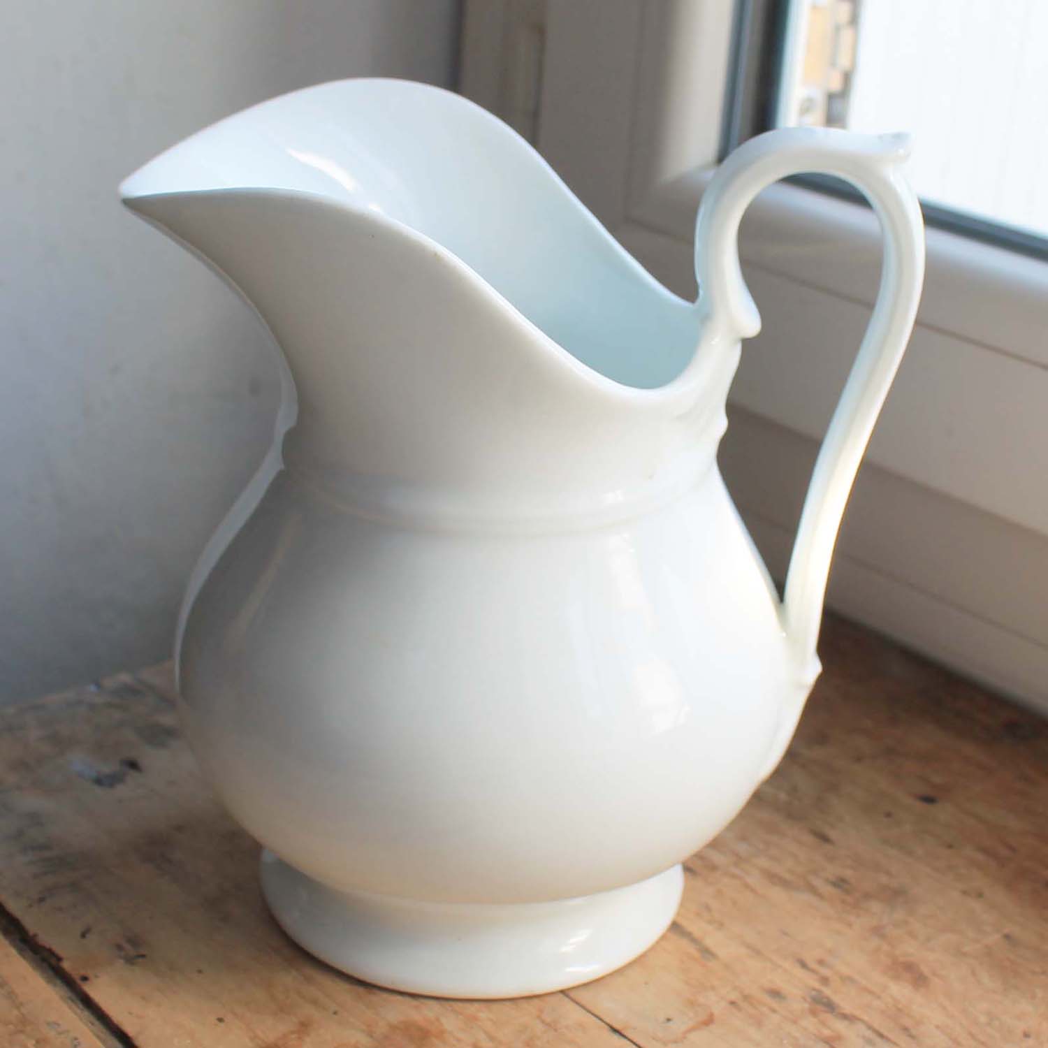 100年ぐらい前の古いポーセリン製のピッチャー。古いものなので多少の傷、汚れがありますが、欠け、ラインはありません。