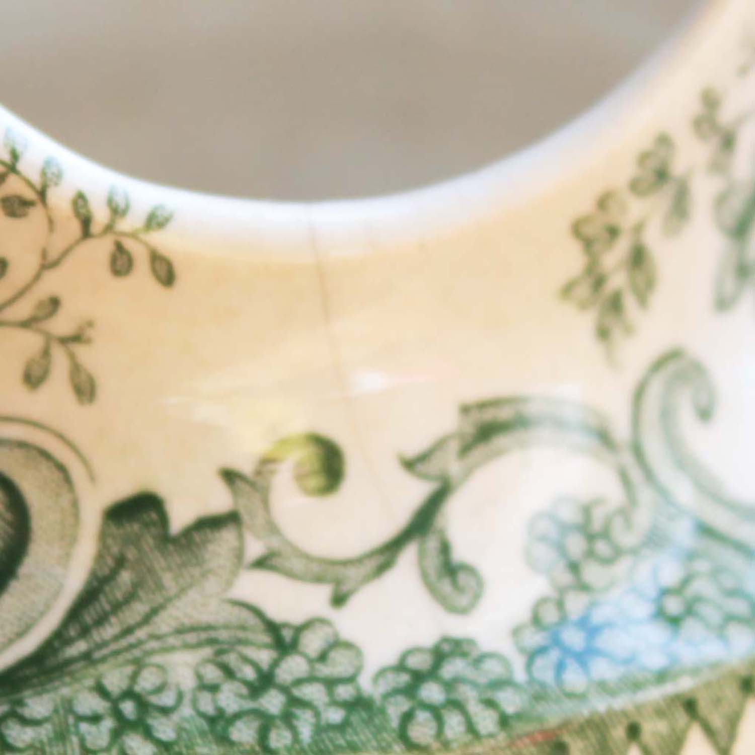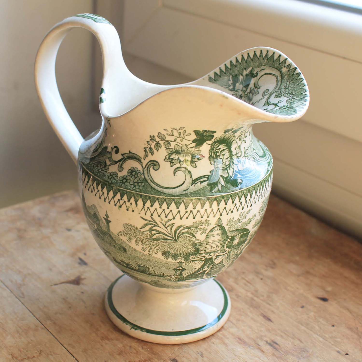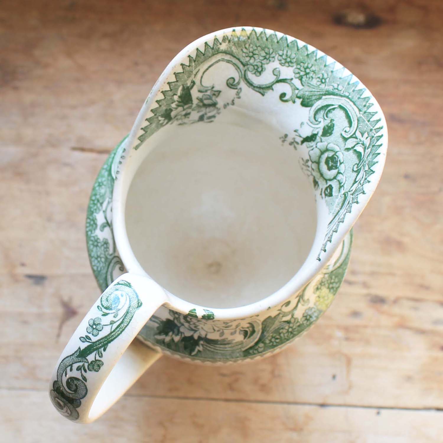 150年以上前の古い難陶器製のピッチャー。多少の傷、汚れ、貫入、ヘアラインがありますが、ライン、欠けはありません。