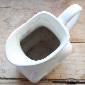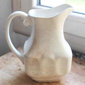 古いイギリス製のピッチャー。陶器製です。古いものなので傷、汚れ、貫入、シミがありますが、欠け、ラインはありません。