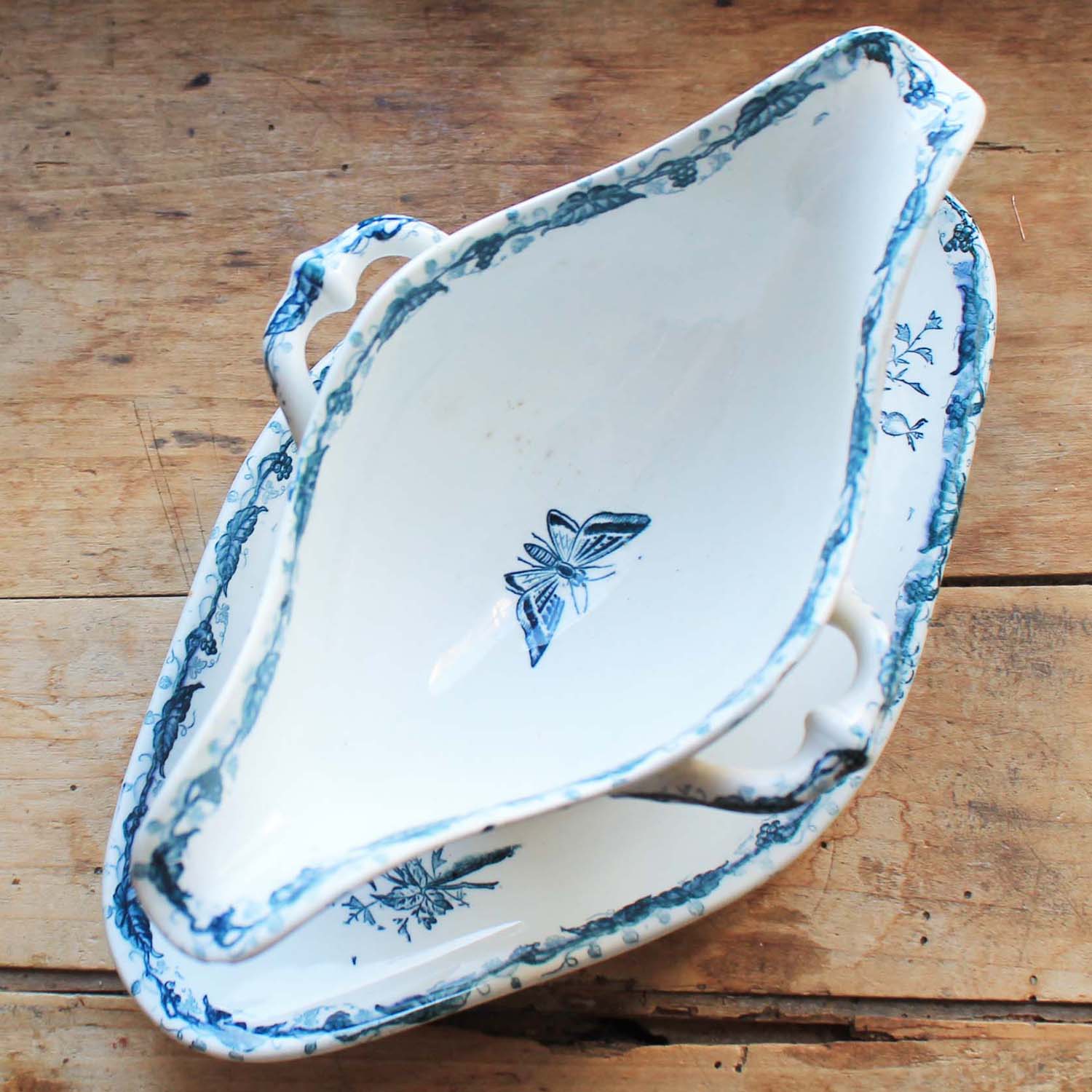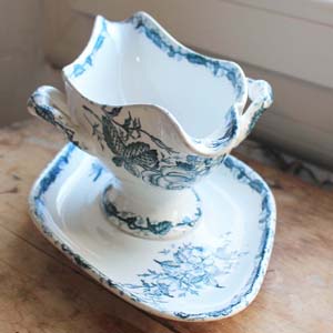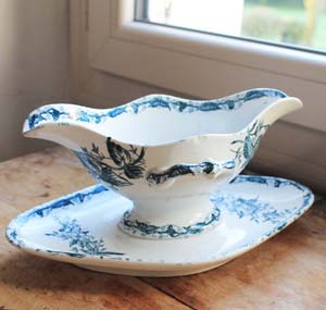 19世紀後期に閉窯したPexonnes製のソーシエール。古いものなのでふちにかけがあります。