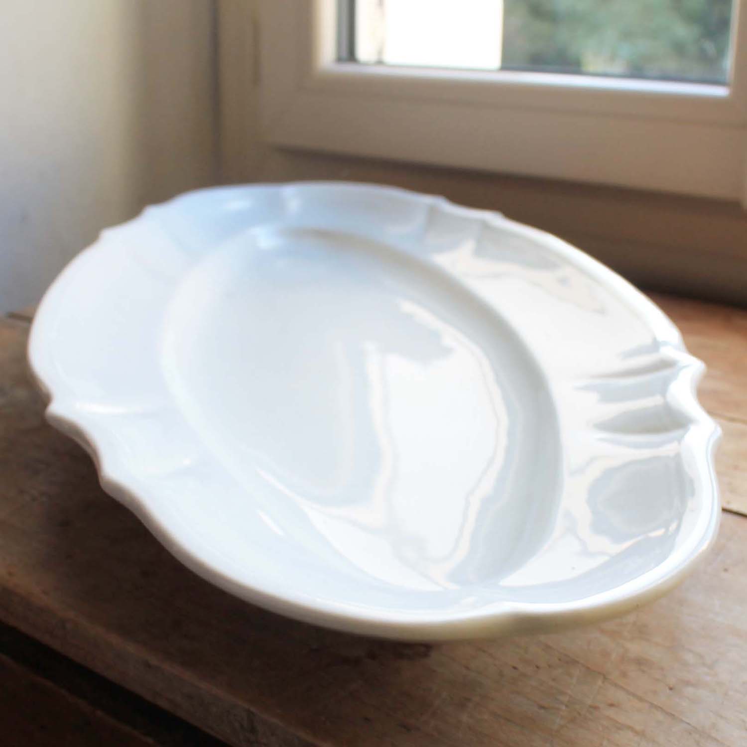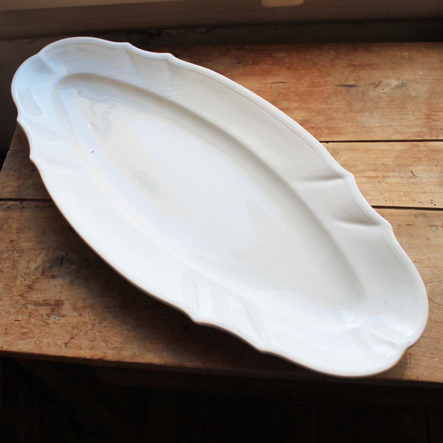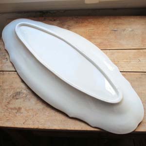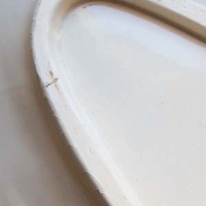 古い陶器製のポワソン皿。古いものなので貫入が入っていますが、欠け、ラインはありません。