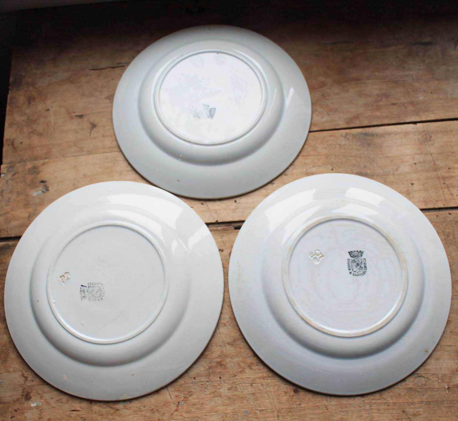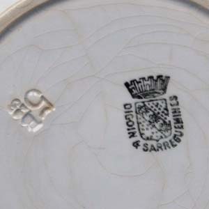 100年ぐらい前の古いサルグミンヌ製のお皿。古いものなので多少の傷、汚れ、貫入、淵に釉薬の剥がれがありますが、欠け、ラインはありません。