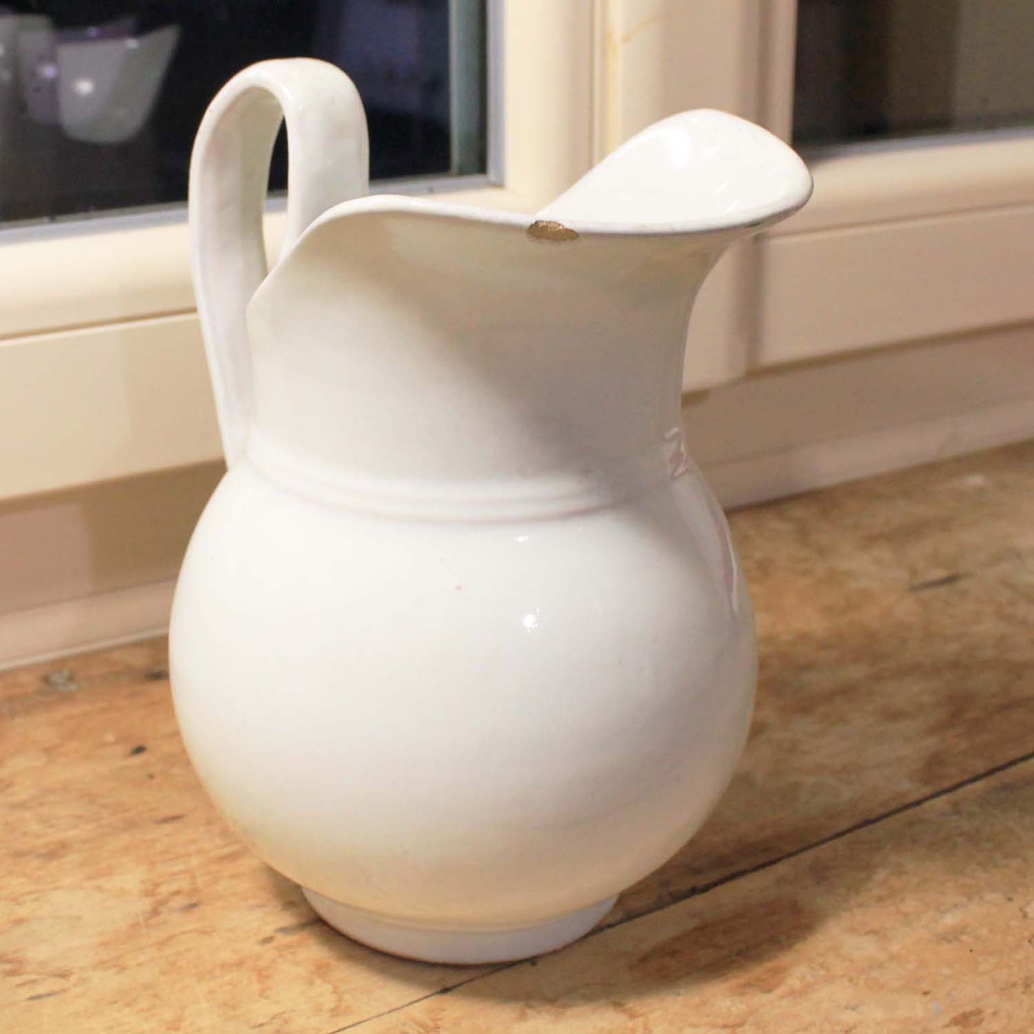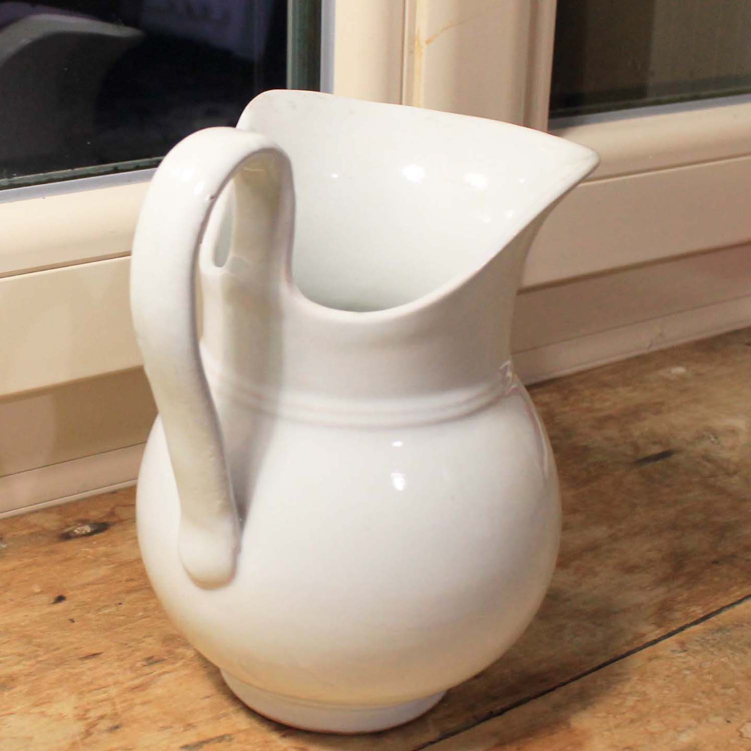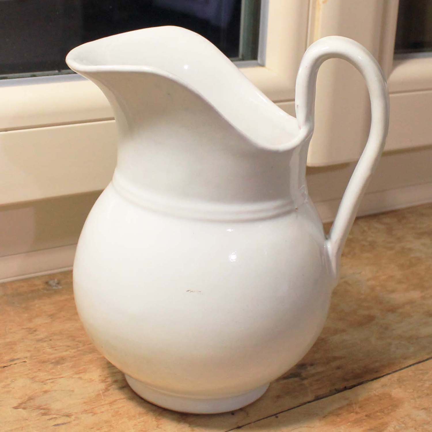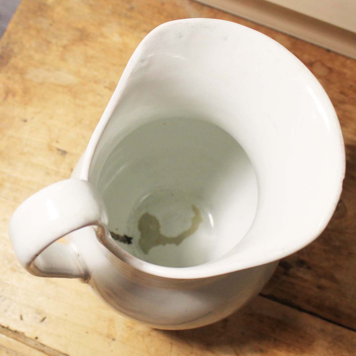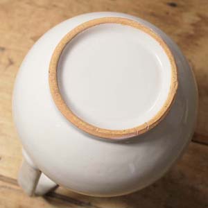 100年ぐらい前の古いピッチャー。テラコッタにムスティエのような厚い釉薬がかかっています。古いものなので傷、汚れ、欠けがあります。