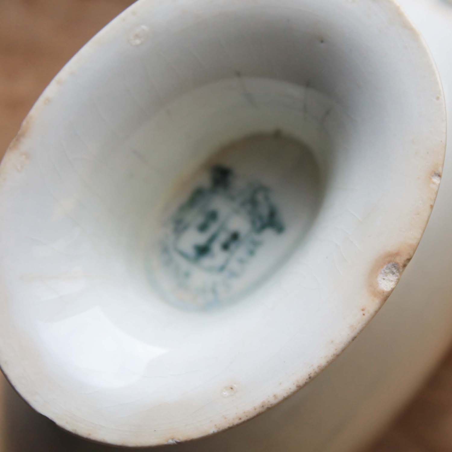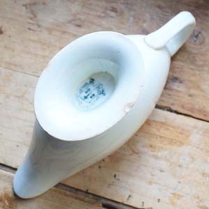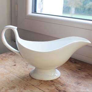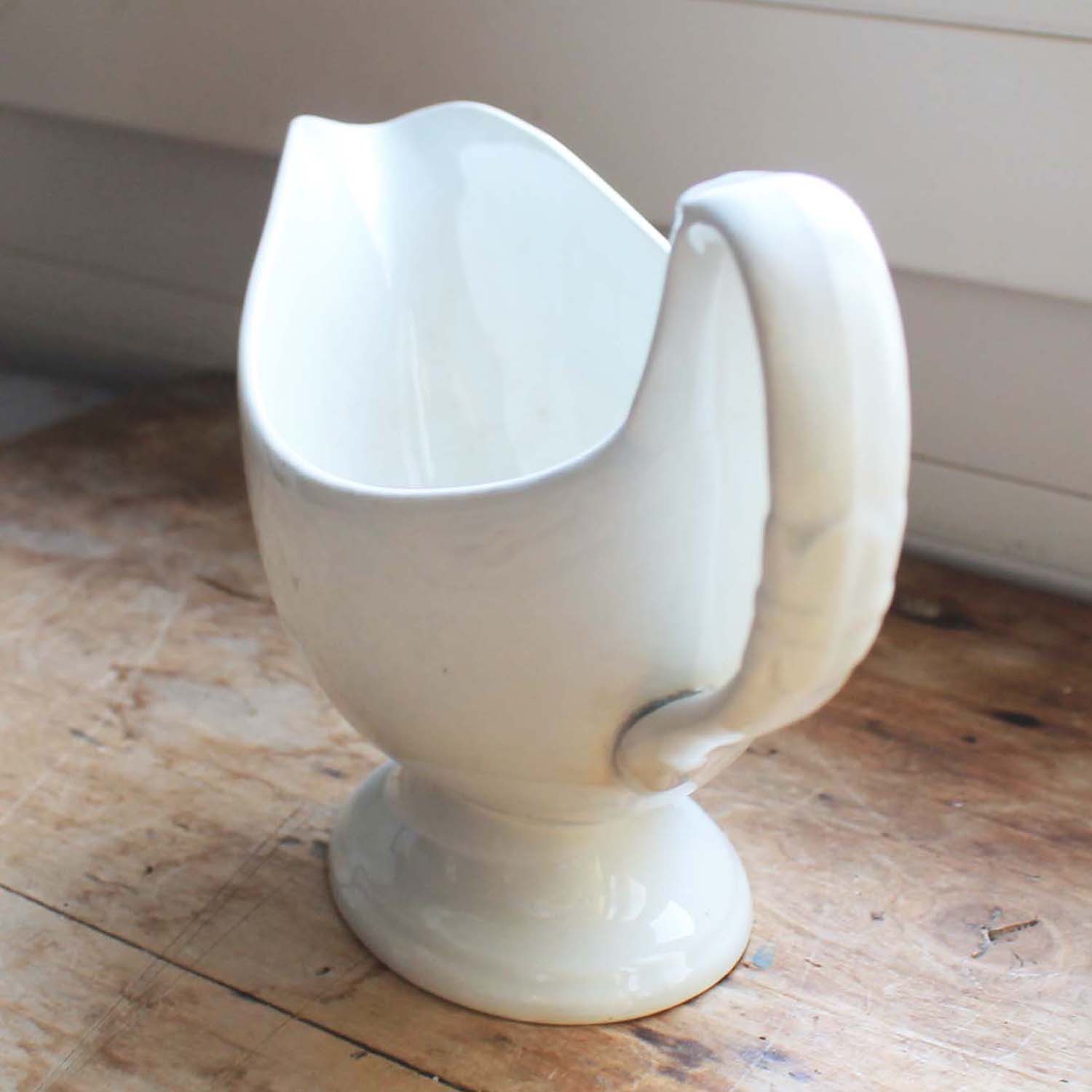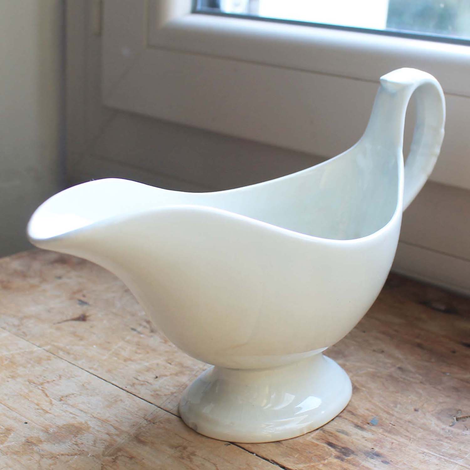 100年ぐらい前の古いサンタマン製のソーシエール。古いものなので多少の傷、汚れ、高台に小さな欠けがあります。