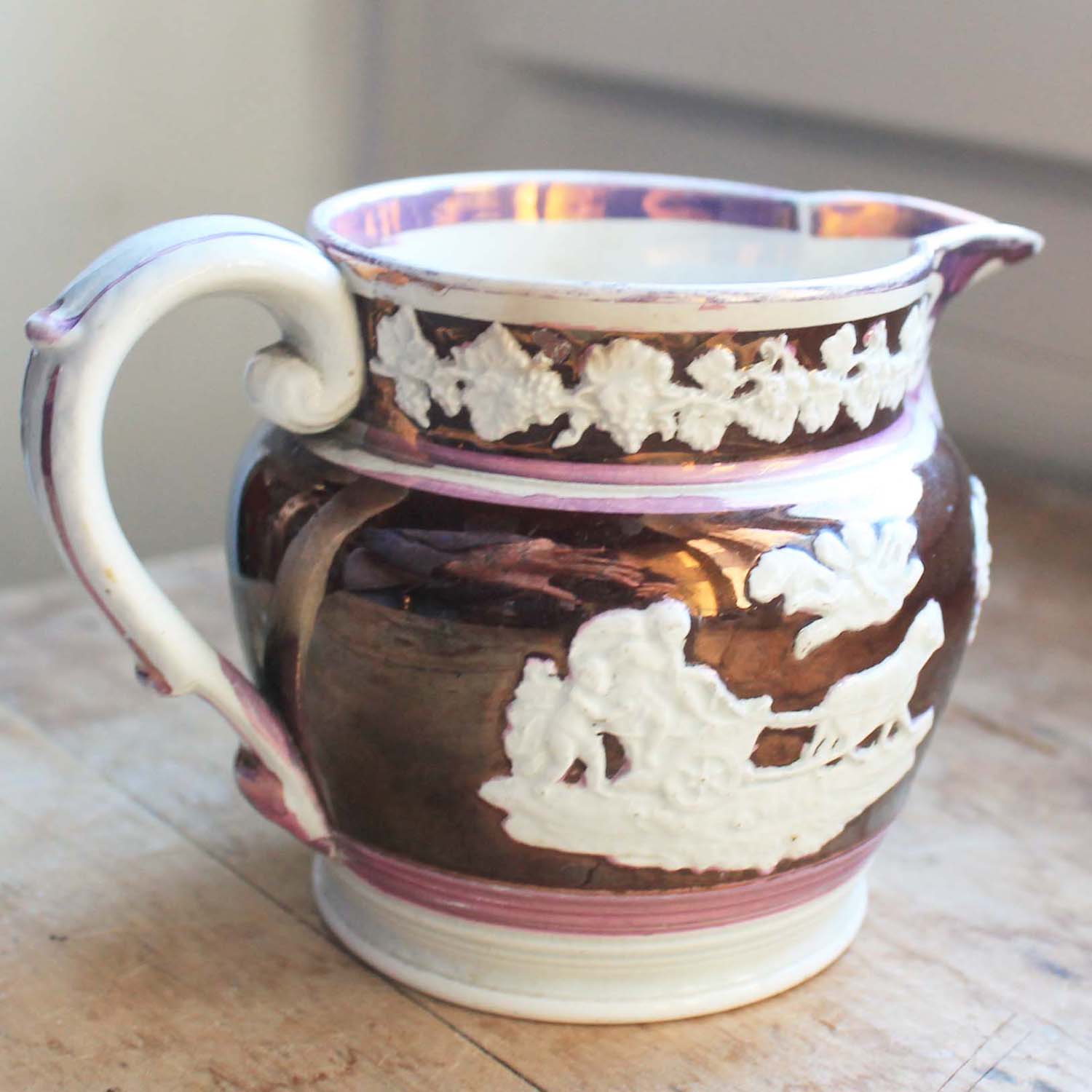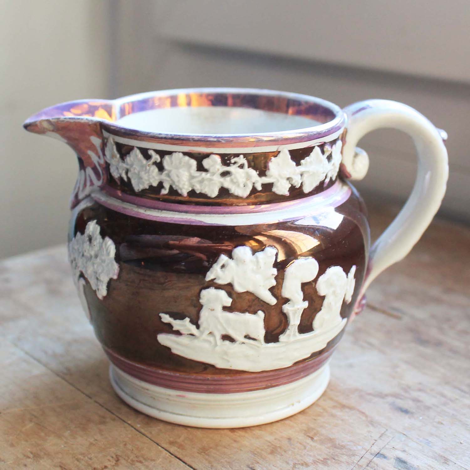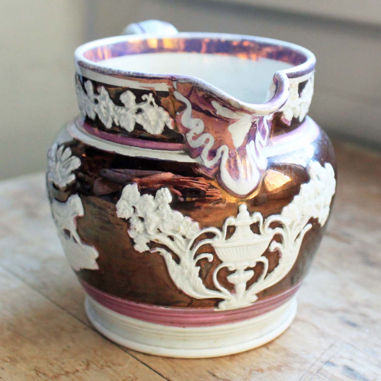 【商品番号】K250229 【 商品名】19世紀中期~後期 イギリス ラスターウエア ミニピッチャー エンボスデザイン