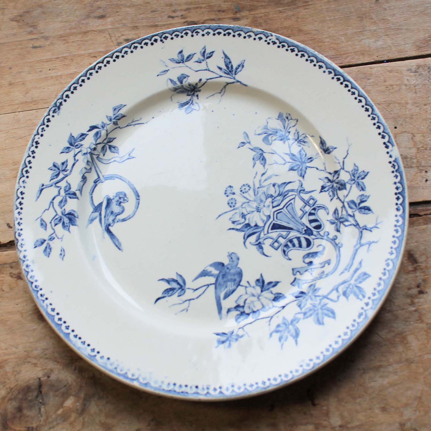 100年ぐらい前の古いクレイユ&モントロー製のお皿。 鳥柄になります。古いものなので多少の傷、汚れがありますが、欠け、ラインはありません。