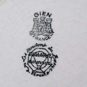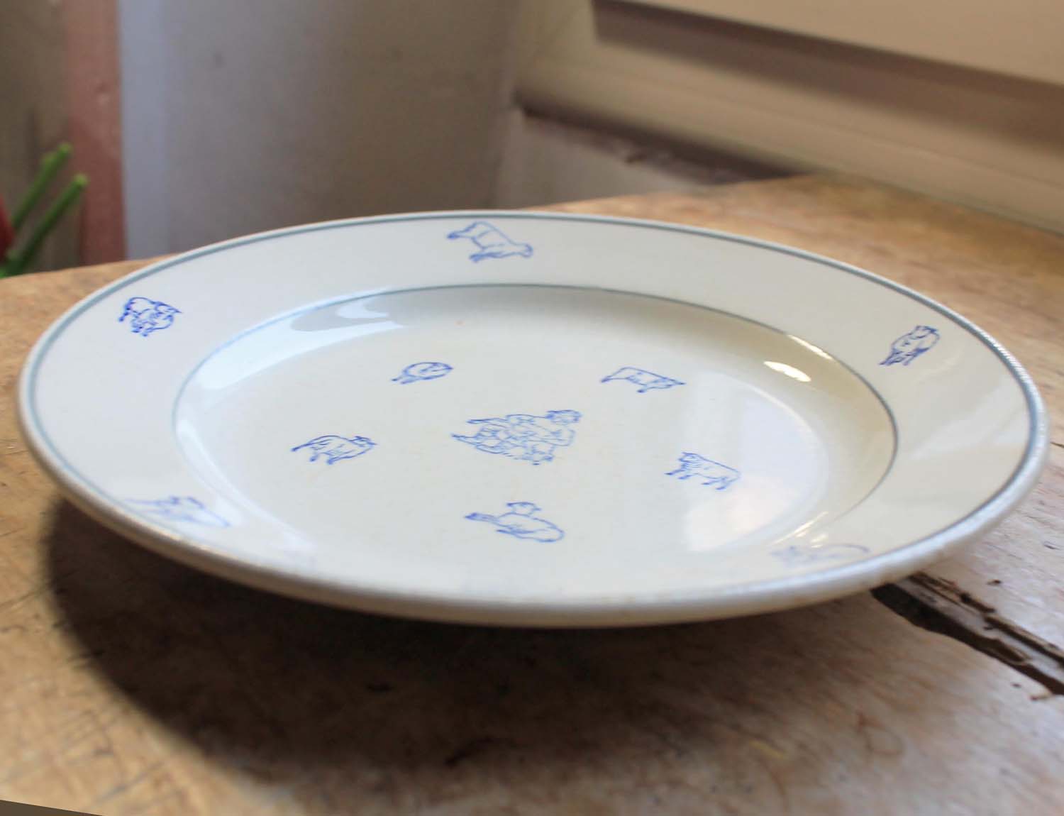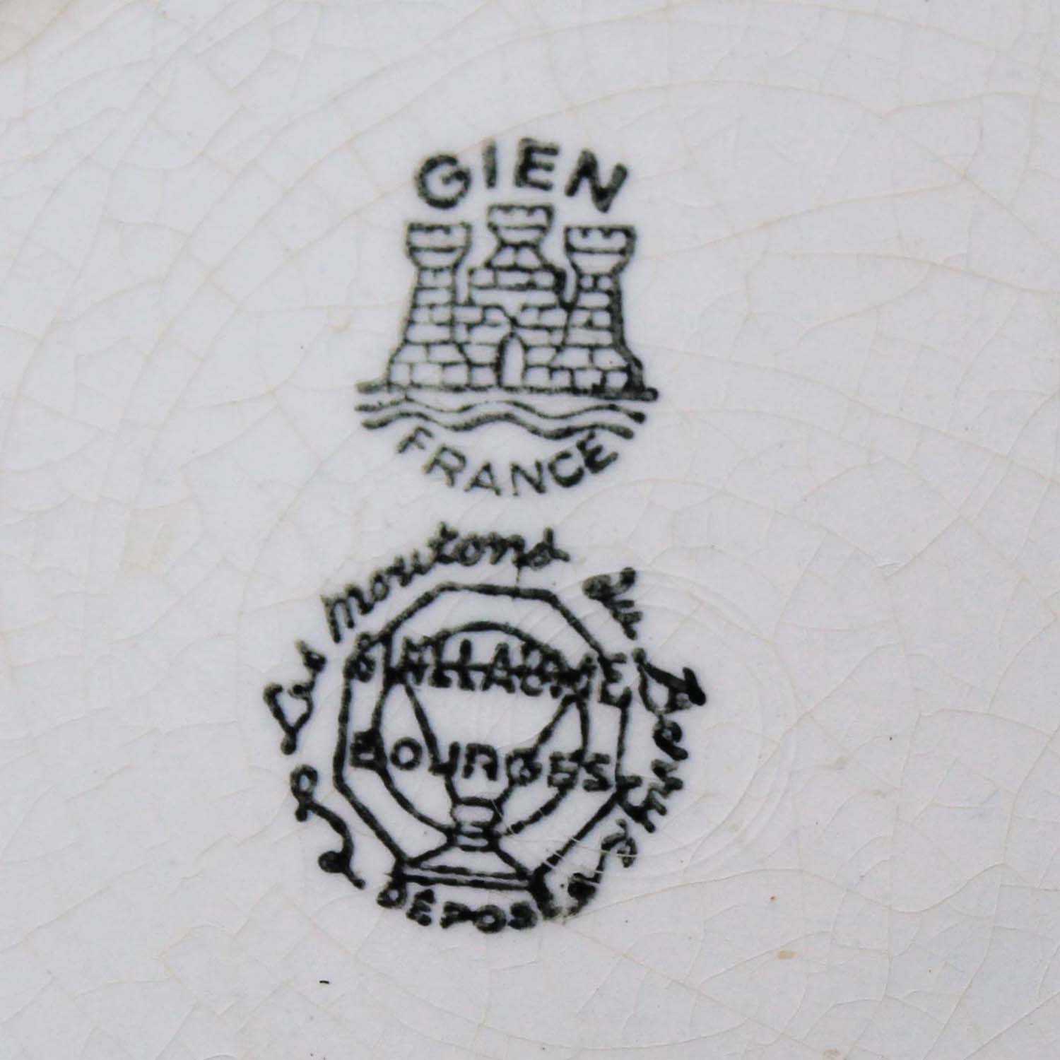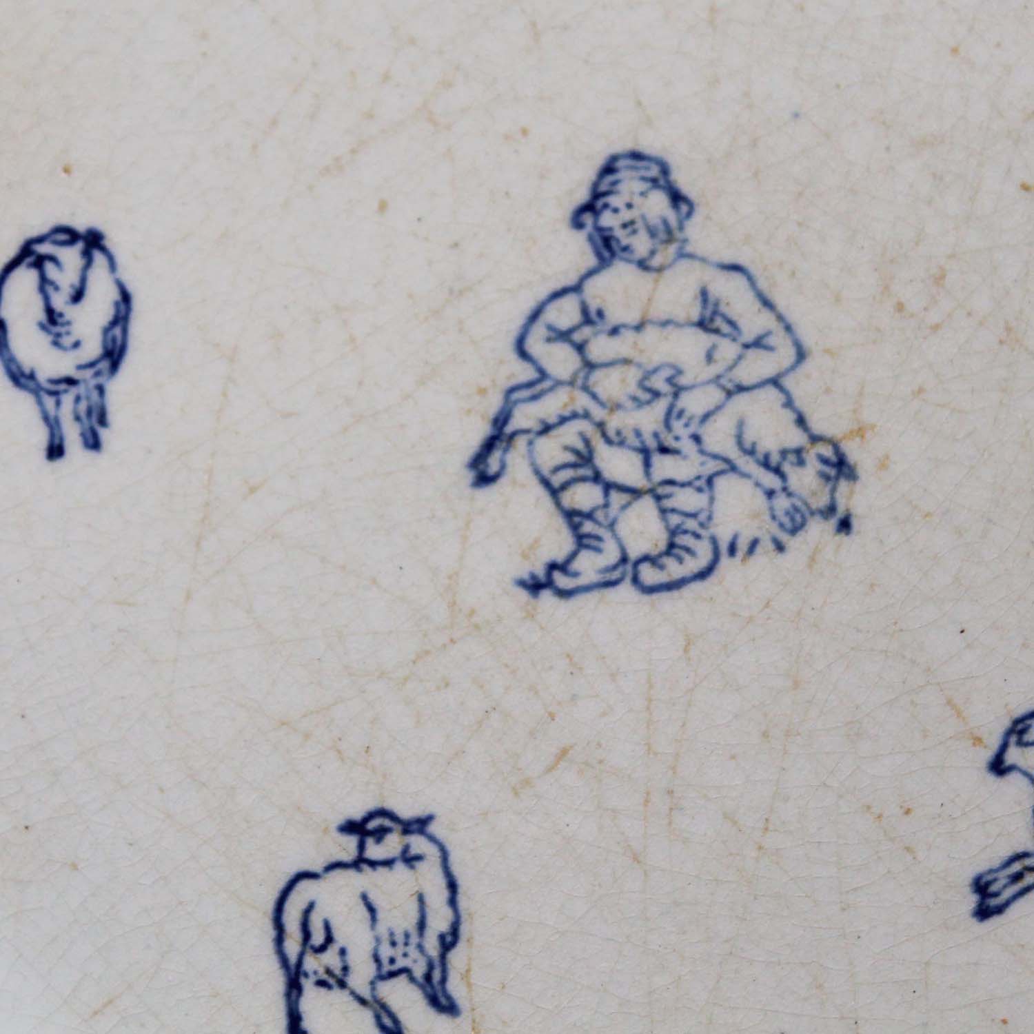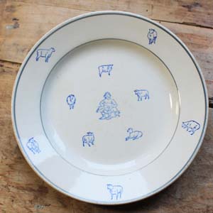 ミッドセンチュリーあたりの古いGIEN製のプレート。羊と羊の毛を刈っている羊飼いの様子が描かれています。古いものなので傷、汚れ、淵に釉薬の剥がれがありますが、欠け、ラインはありません。