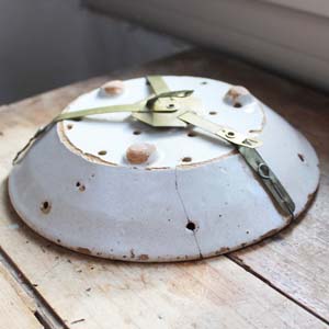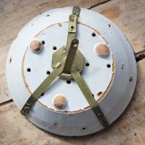 もしかしたら17世紀せいかもしれない、とても古いお皿。 壁に飾るためのフックがついています。古いものなので、欠け、ラインがあります。