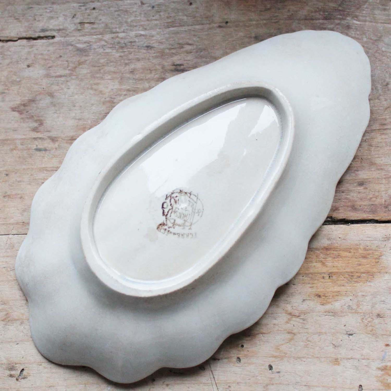 100年ぐらい前の古いラヴィエ。 Choisy le roi製です。陶器製です。古いものなので傷、汚れ、貫入がありますが、欠け、ラインはありません。