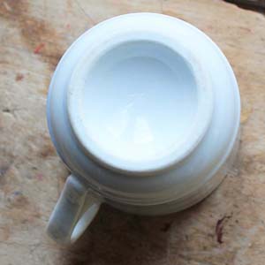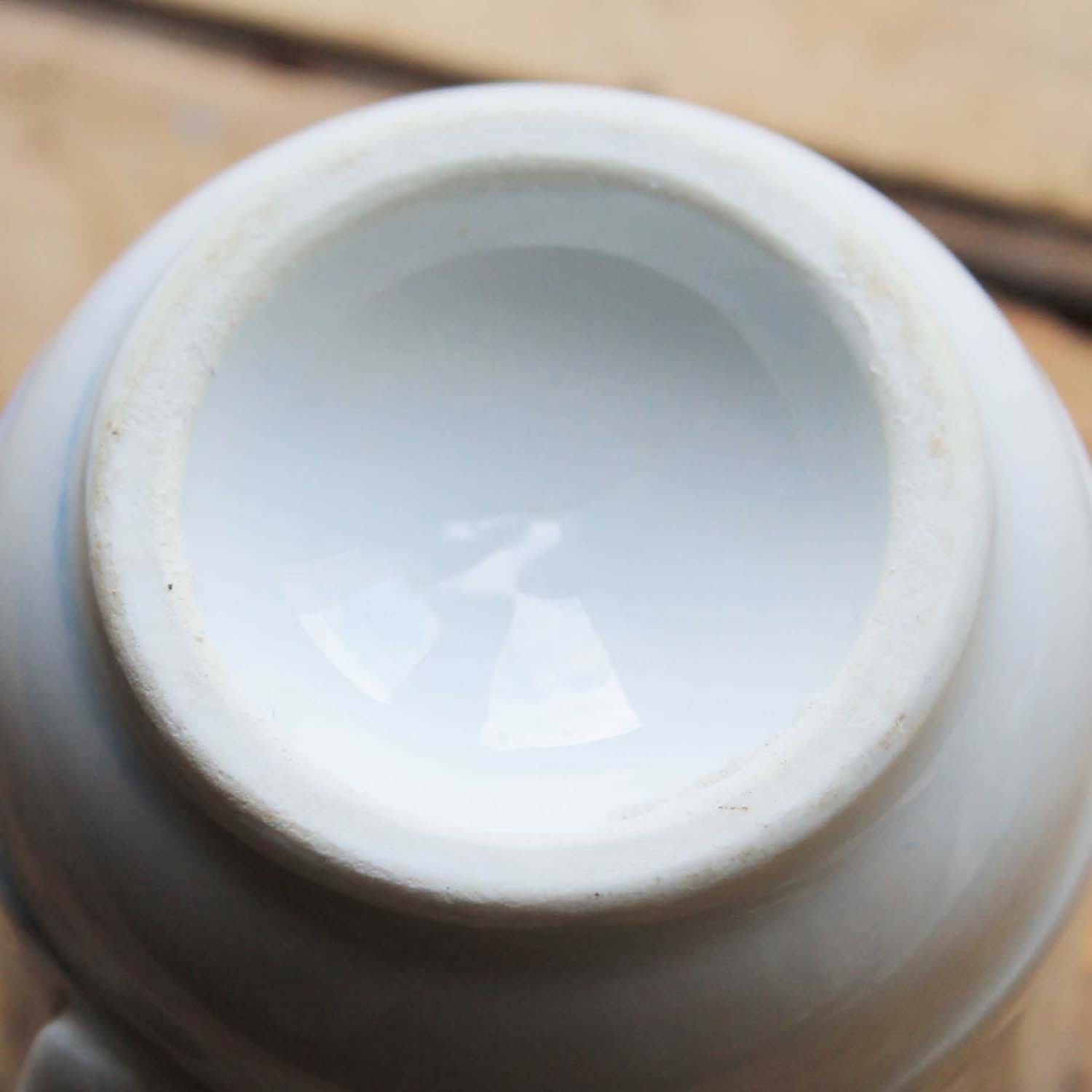 100年以上前の古いポーセリン製のブリュロ。古いものなのでラインがかすれて消えているところがありますが、欠け、ラインはありません。