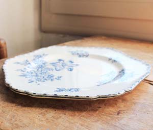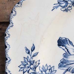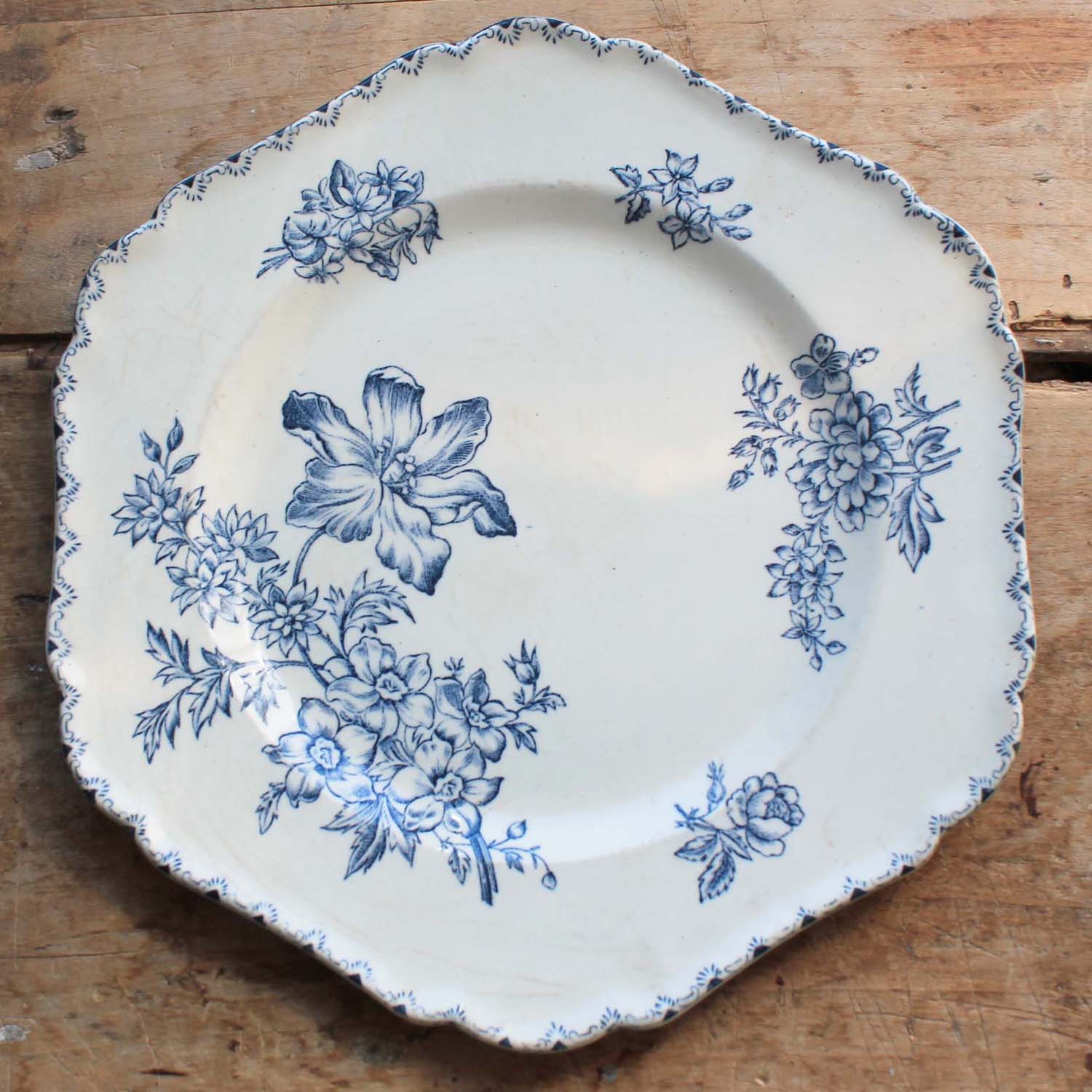 100年ぐらい前の古いプレート。6角形です。古いものなので多少の傷、汚れ、貫入、シミがありますが、欠け、ラインはありません。