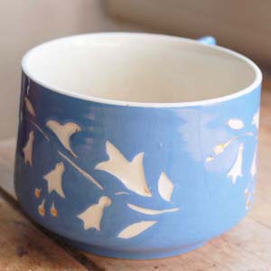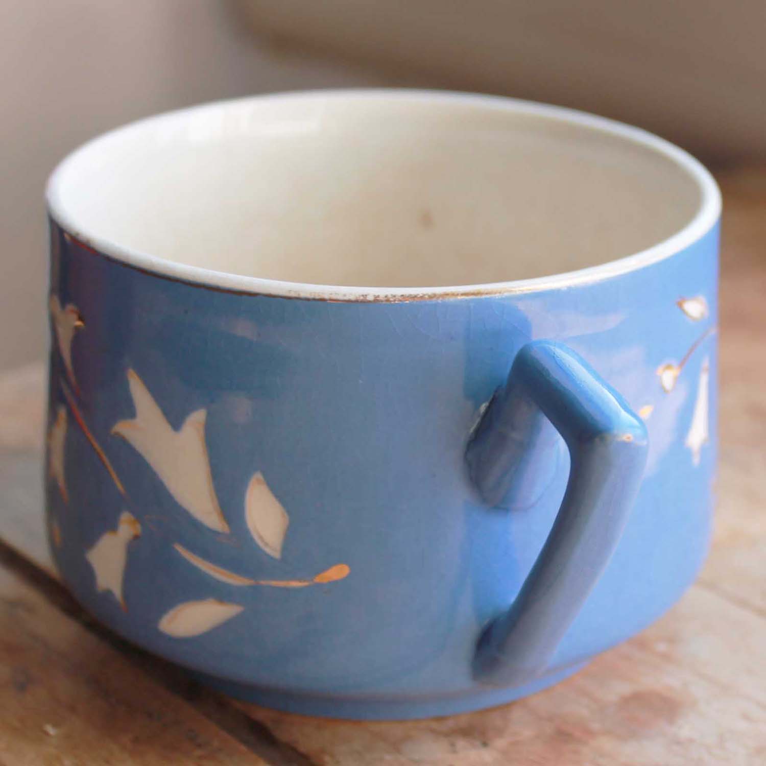 朝食用(ココア用)の大き目のカップ。 Digoin製です。 切子的な感じがかわいいです。古いものなので多少の傷、汚れ、貫入がありますが、欠け、ラインはありません。
