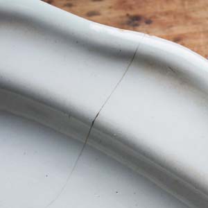 100年以上前の古いムスティエのお皿。古いものなのでライン、欠けがありますが、あまり使った形跡のないものです。
