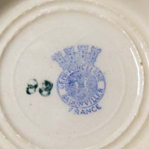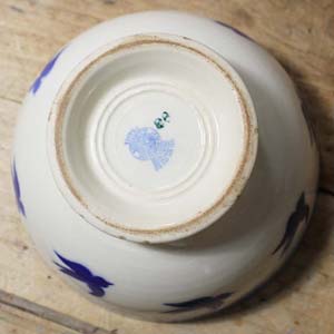 古いバドンビレー製のカフェオレボウル。ツバメ柄です。古いものなので多少淵に欠けがあります。
