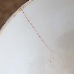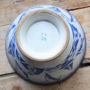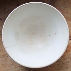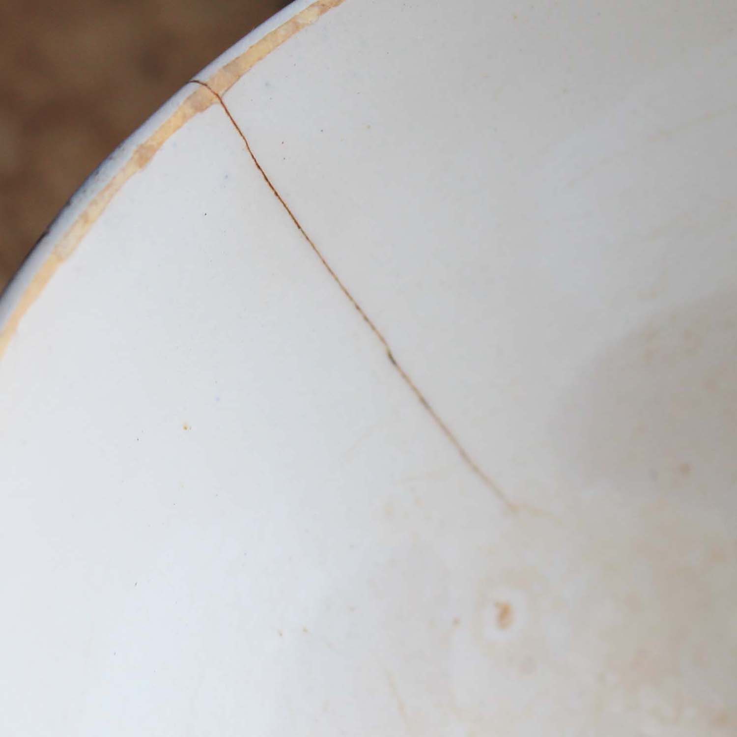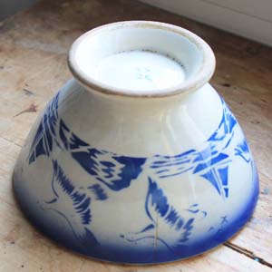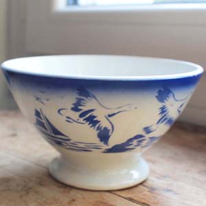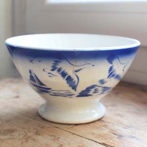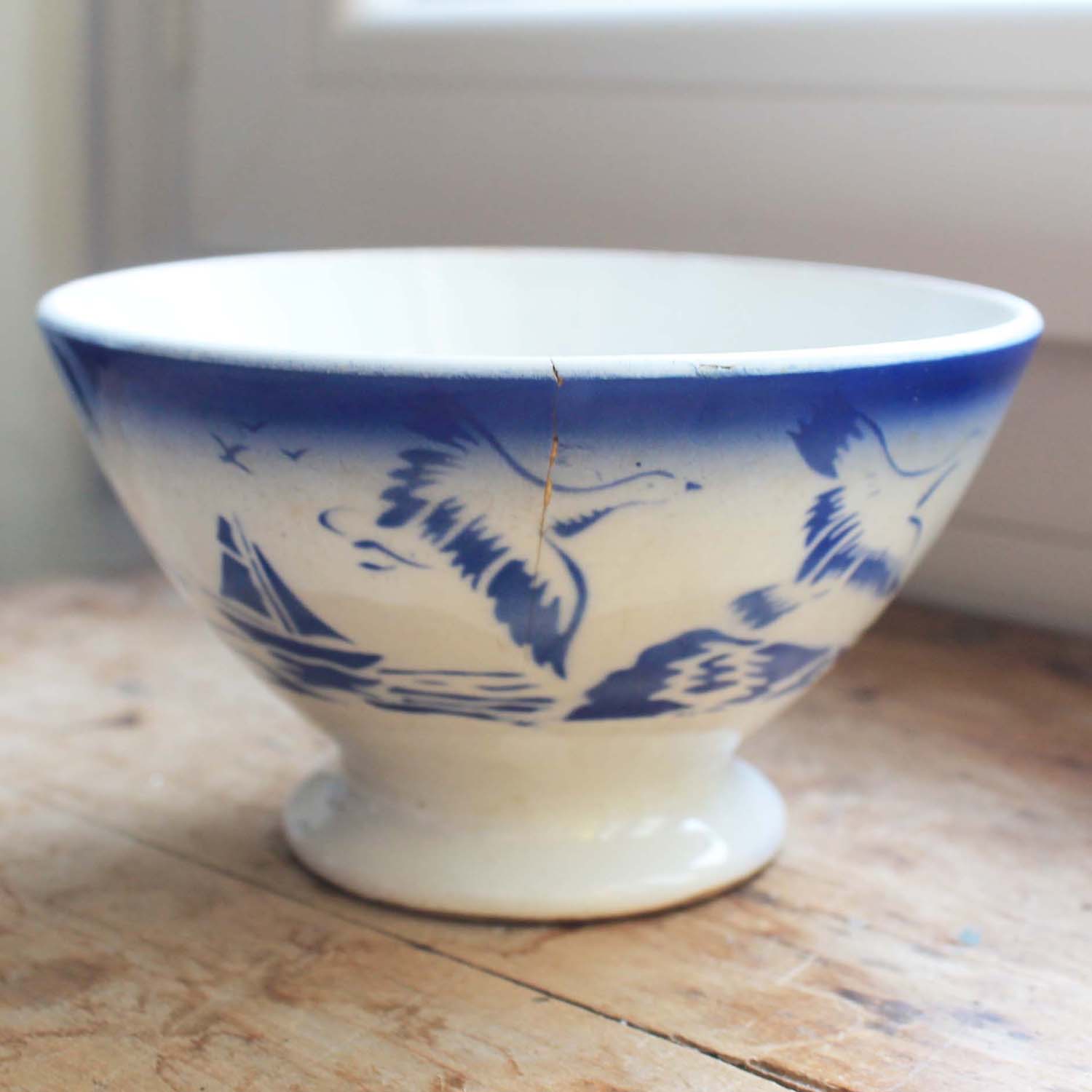 古いバドンビレー製のカフェオレボウル。ヨット&カモメ柄です。古いものなのでラインがあります。