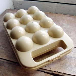 卵を買いに行くときに持っていた追うラスティックのバッグ。 卵を12個入れられます。 古いものなので、多少の傷、汚れがあります。