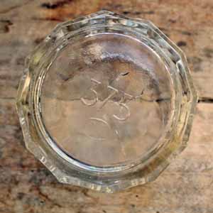 古いジャムジャー。 型ガラスなので、作られた当時に入った気泡やガラスのよれがありますが、欠け、ラインはありません。