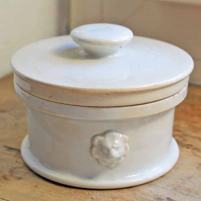 クレイユ&モントロー製の珍しいフォアグラ用のポット。100年以上前のものなので、縁に小さな欠けがあります。 状態を鑑みて格安のお値段を付けました。