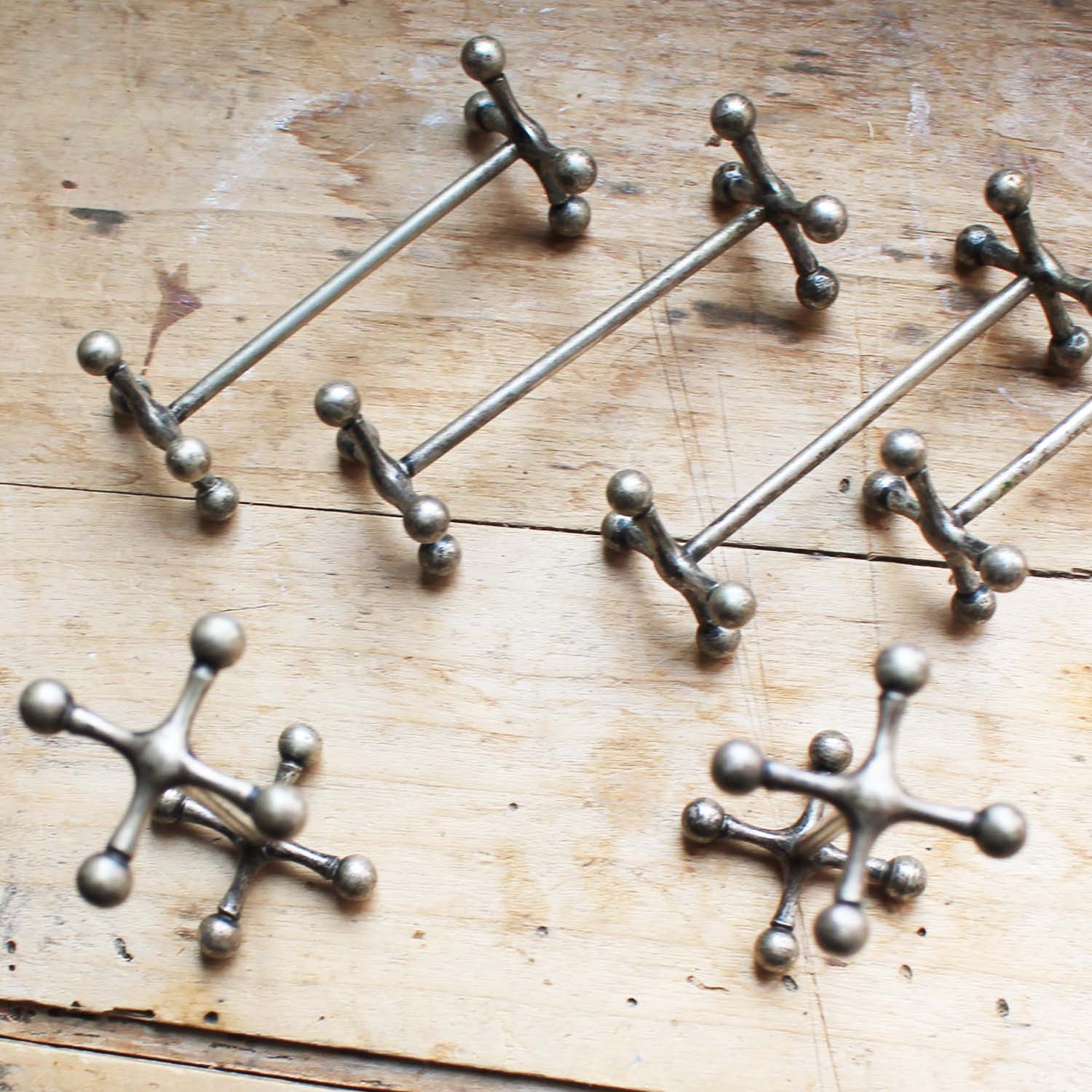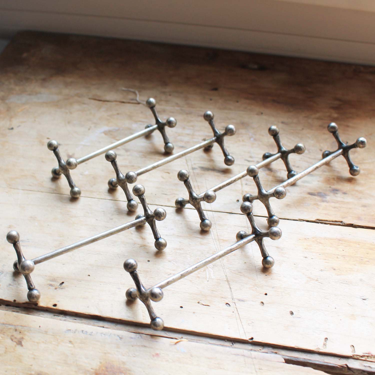 古い金属製のナイフ置き、6個セットです。古いものなので金属が歪んでいるところがあります。