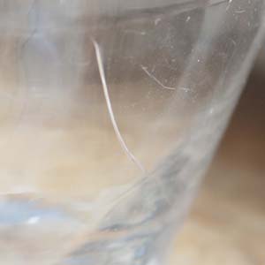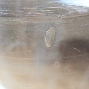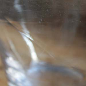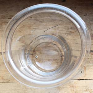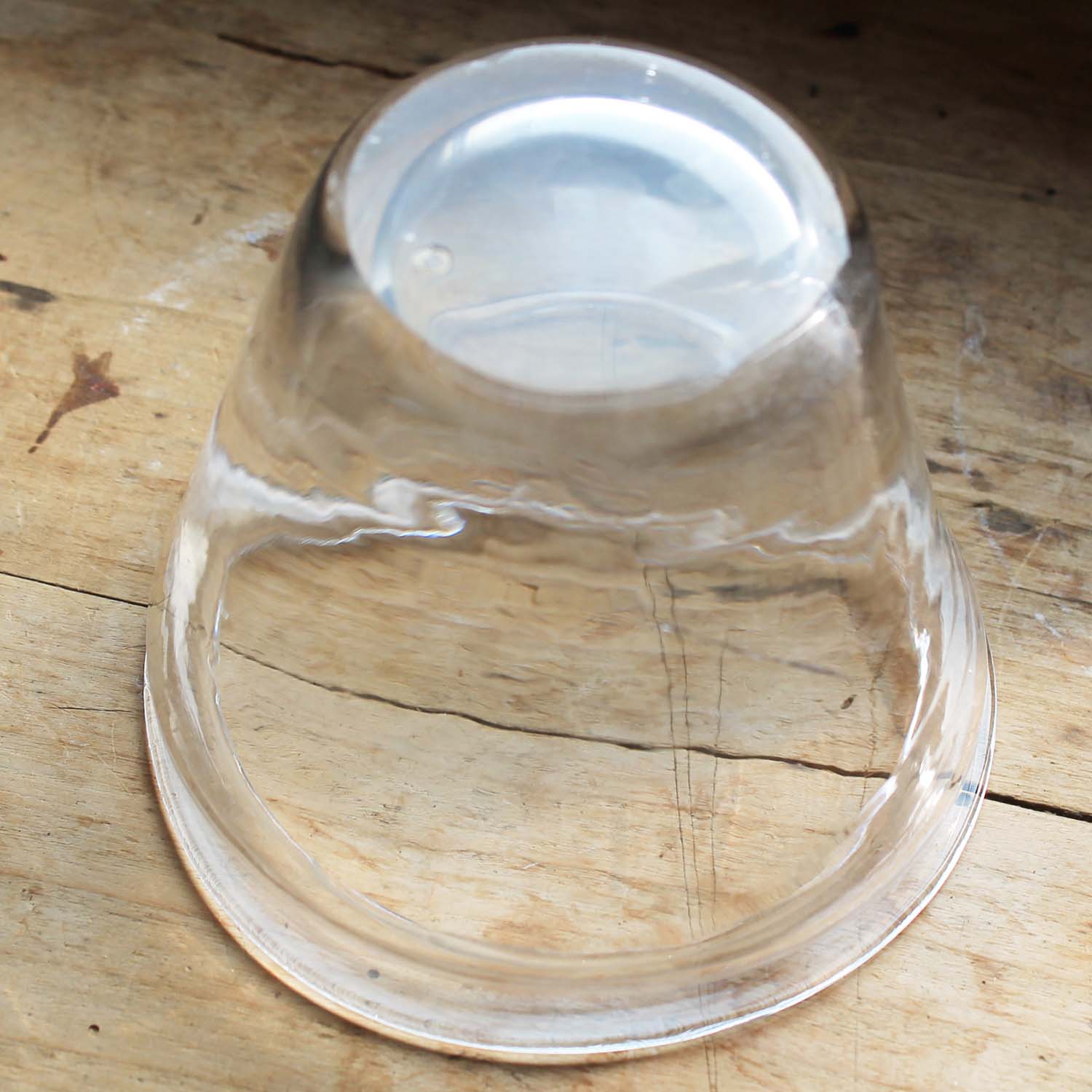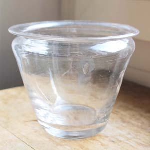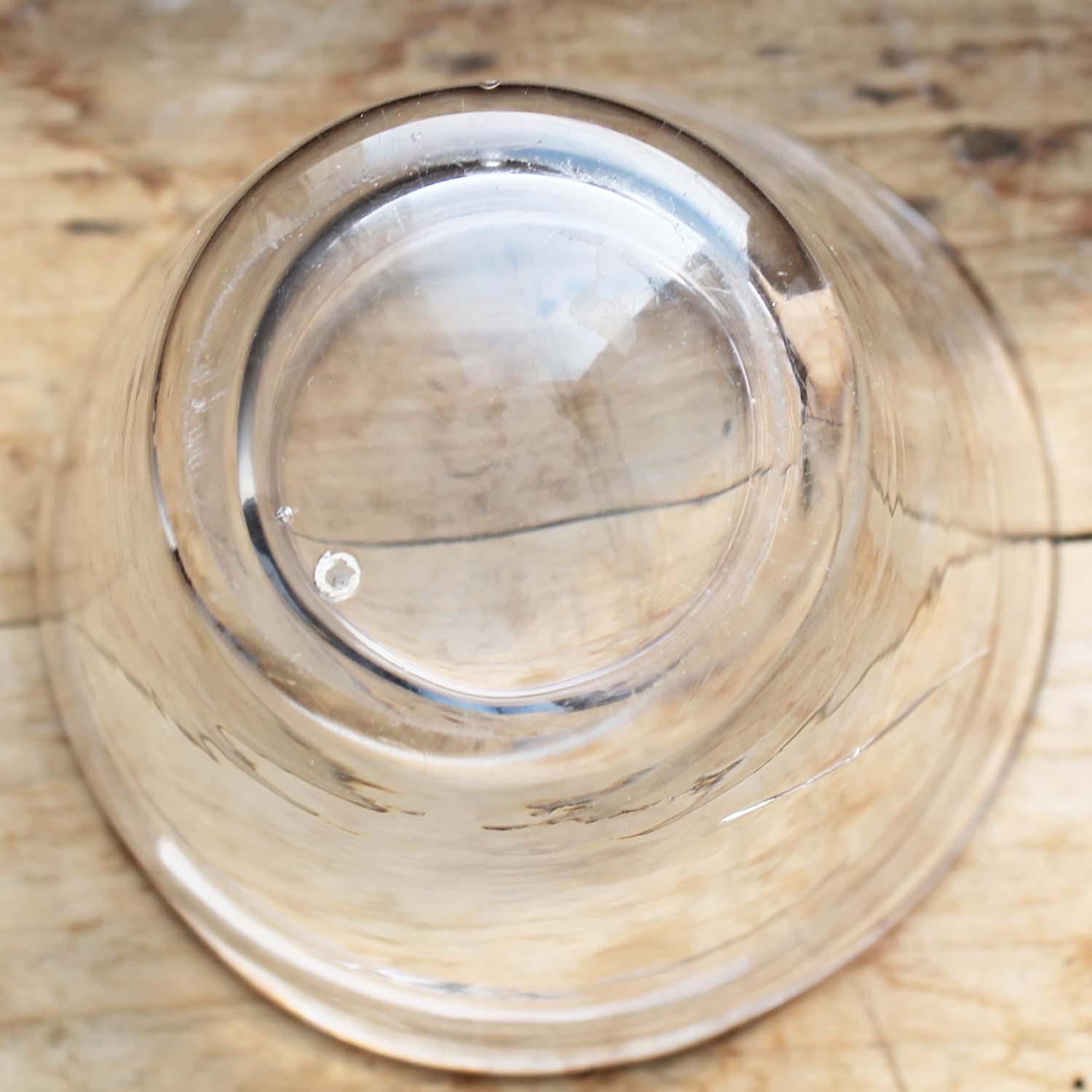 200年ぐらい前の古いコンフィチュールポット。 吹きガラス製です。ラインのように見えるところは作られた当時に入った難です。古いものなので気泡、ガラスのよれがあります。