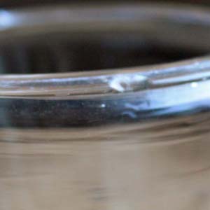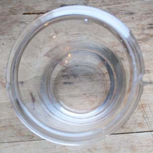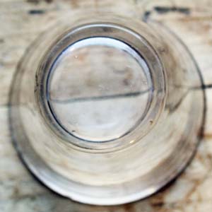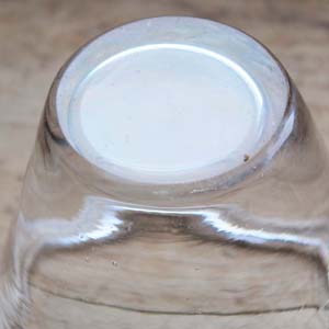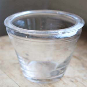 200年ぐらい前の古いコンフィチュールポット。 吹きガラス製です。ラインのように見えるところは作られた当時に入った難です。古いものなので気泡、ガラスのよれ、かけがあります。