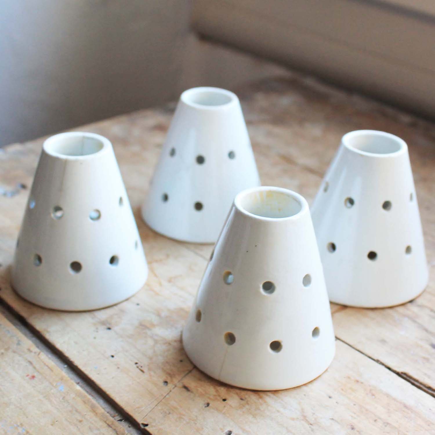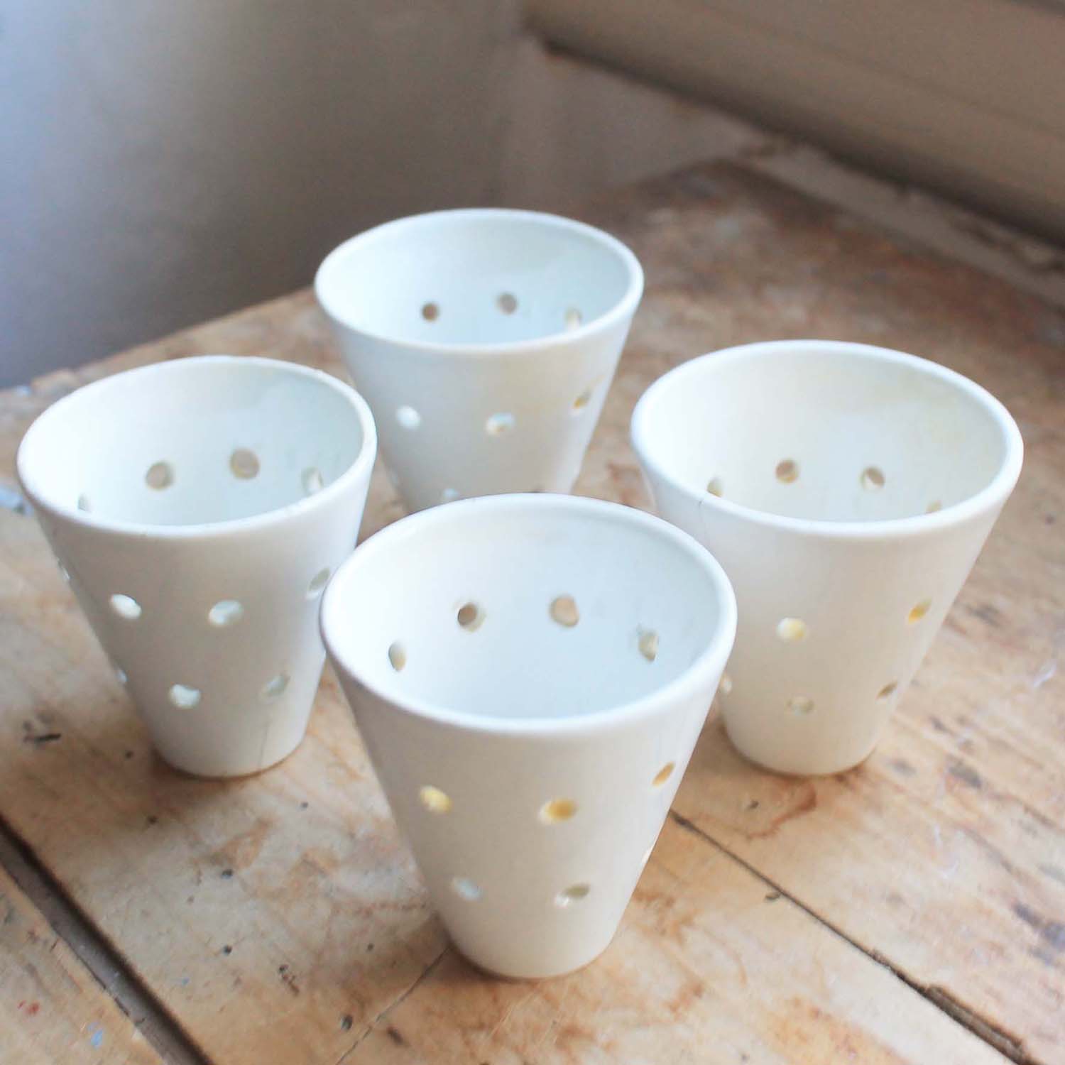 古い陶器製のチーズモウルド。ヤギチーズ用です。古いものなので多少ヘアラインがありますが、掛けはありません。