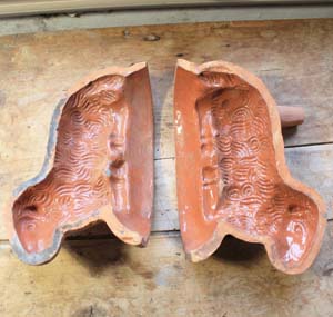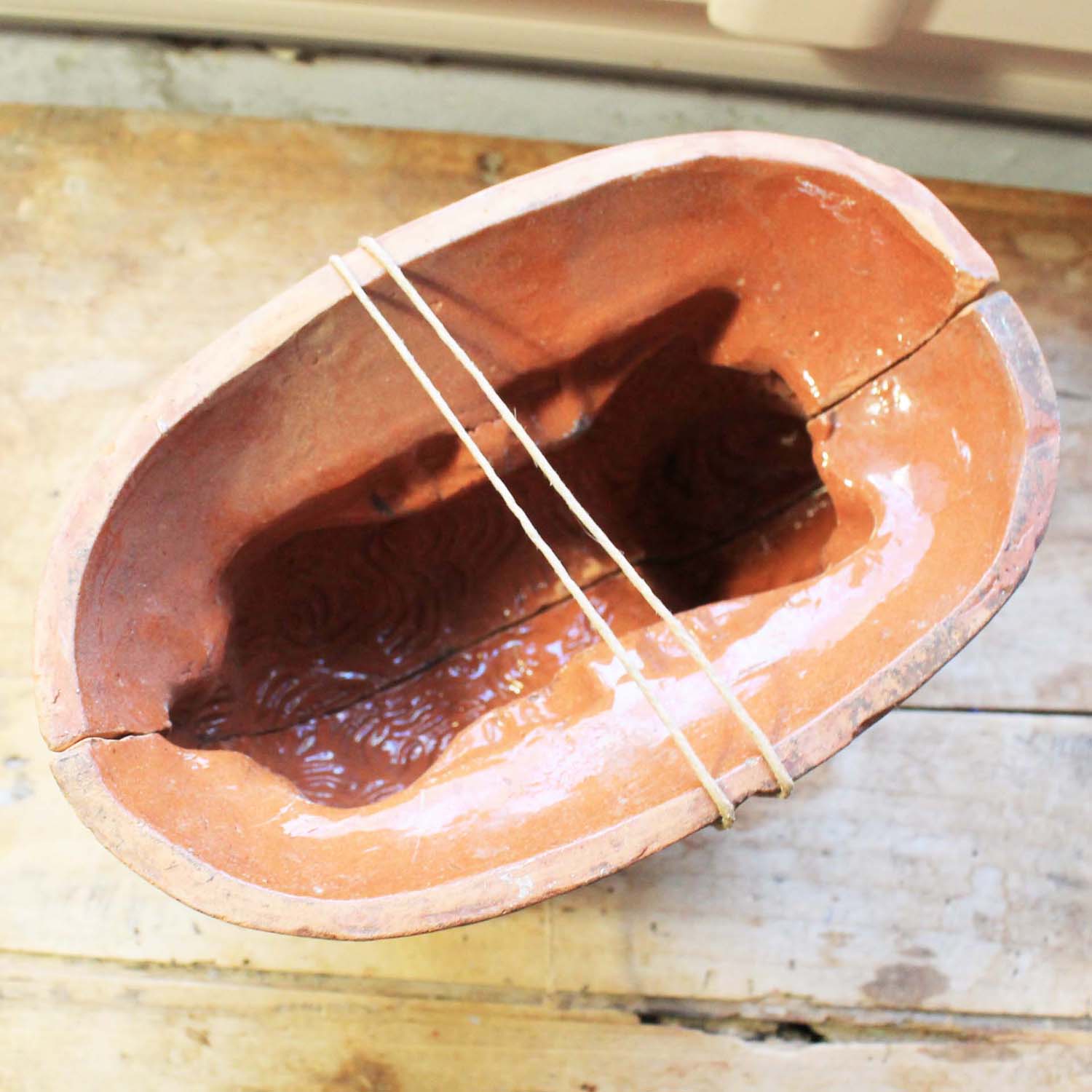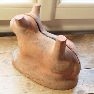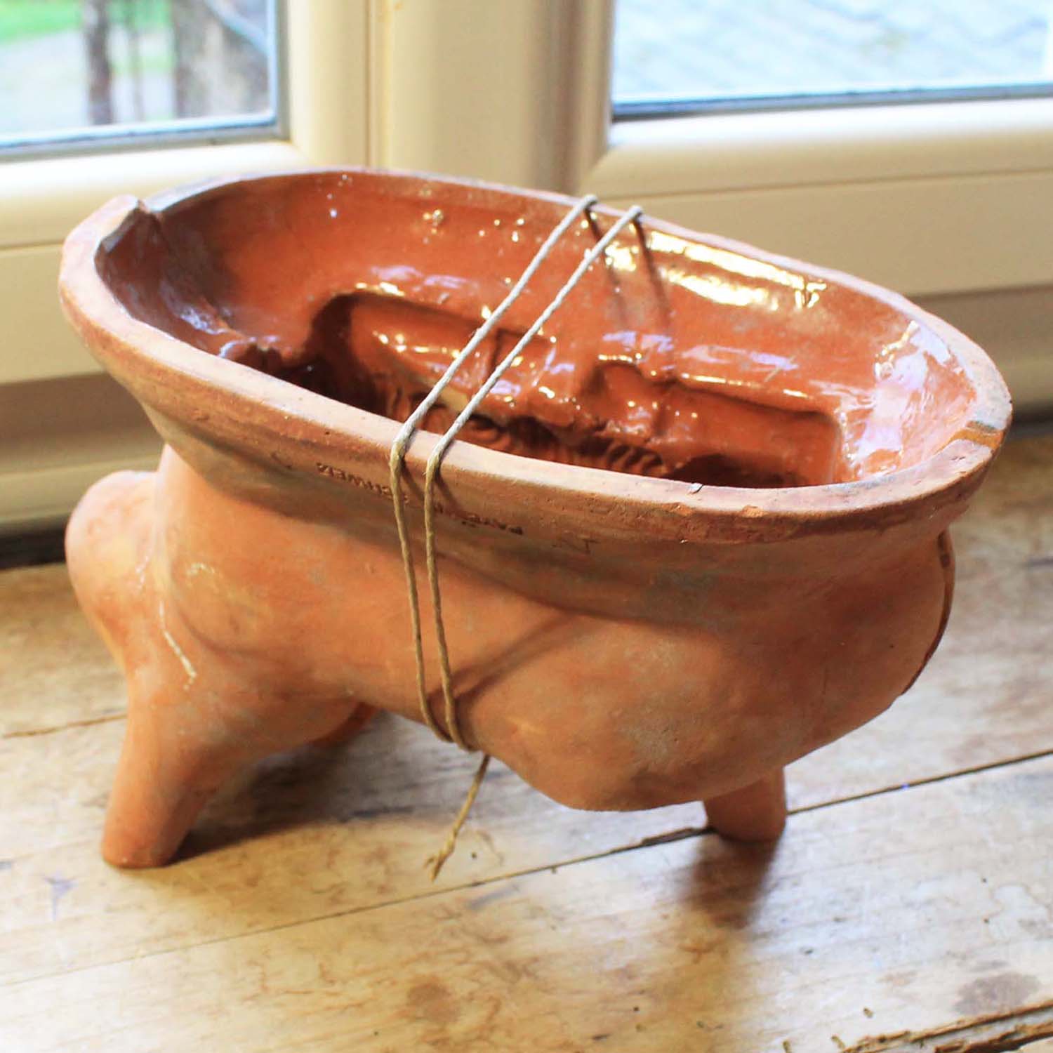 古いアニョーパスカルの型。メーカー名はW. Sieberです。 アニョーパスカルとは、アルザス地方の郷土菓子でイースター(パック)の時に食べるケーキになります。通常は羊の形のケーキで、こちらも羊の形をしています。 古いテラコッタ製なので、欠け、足が一本ありません。状態を鑑みて格安のお値段を付けました。