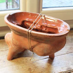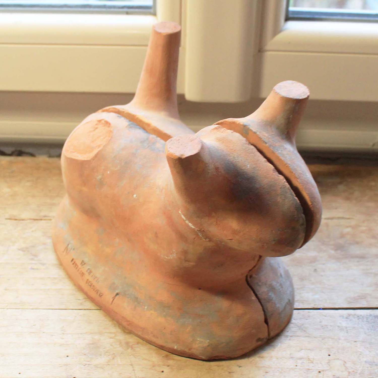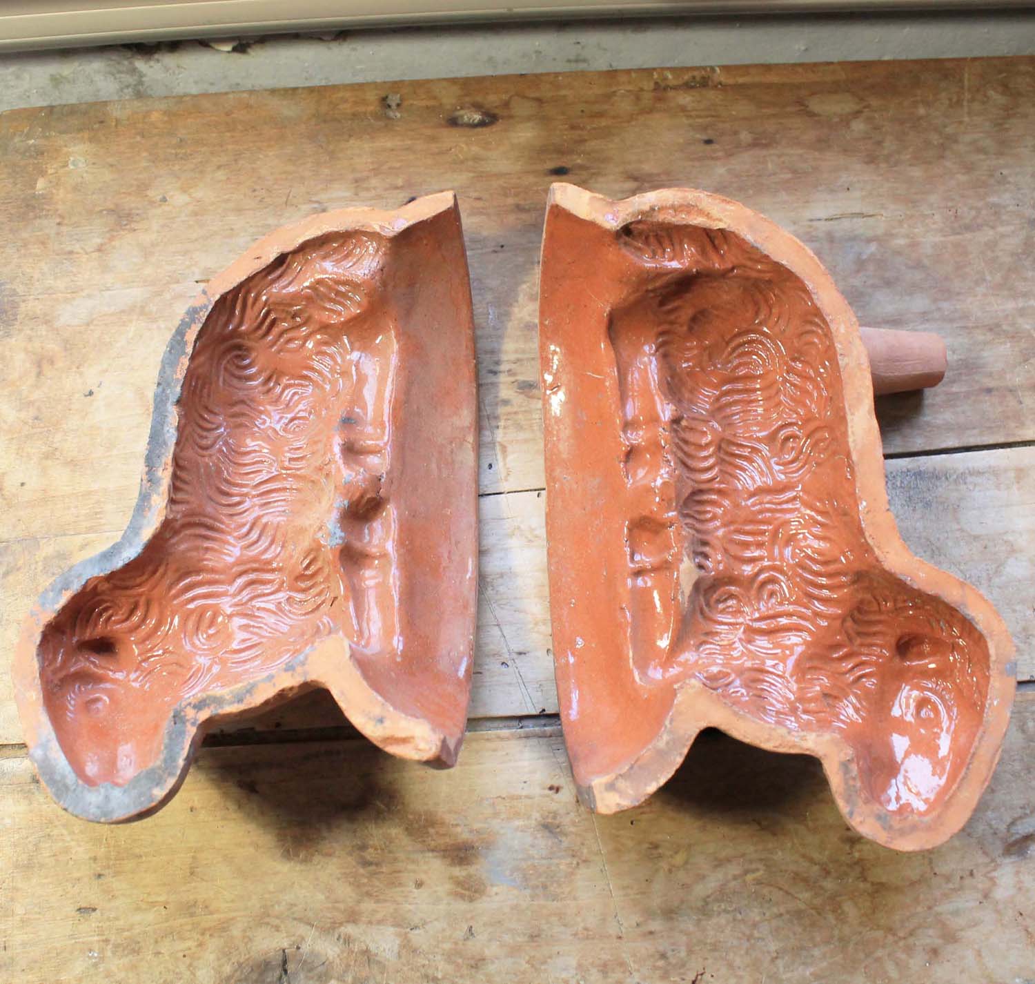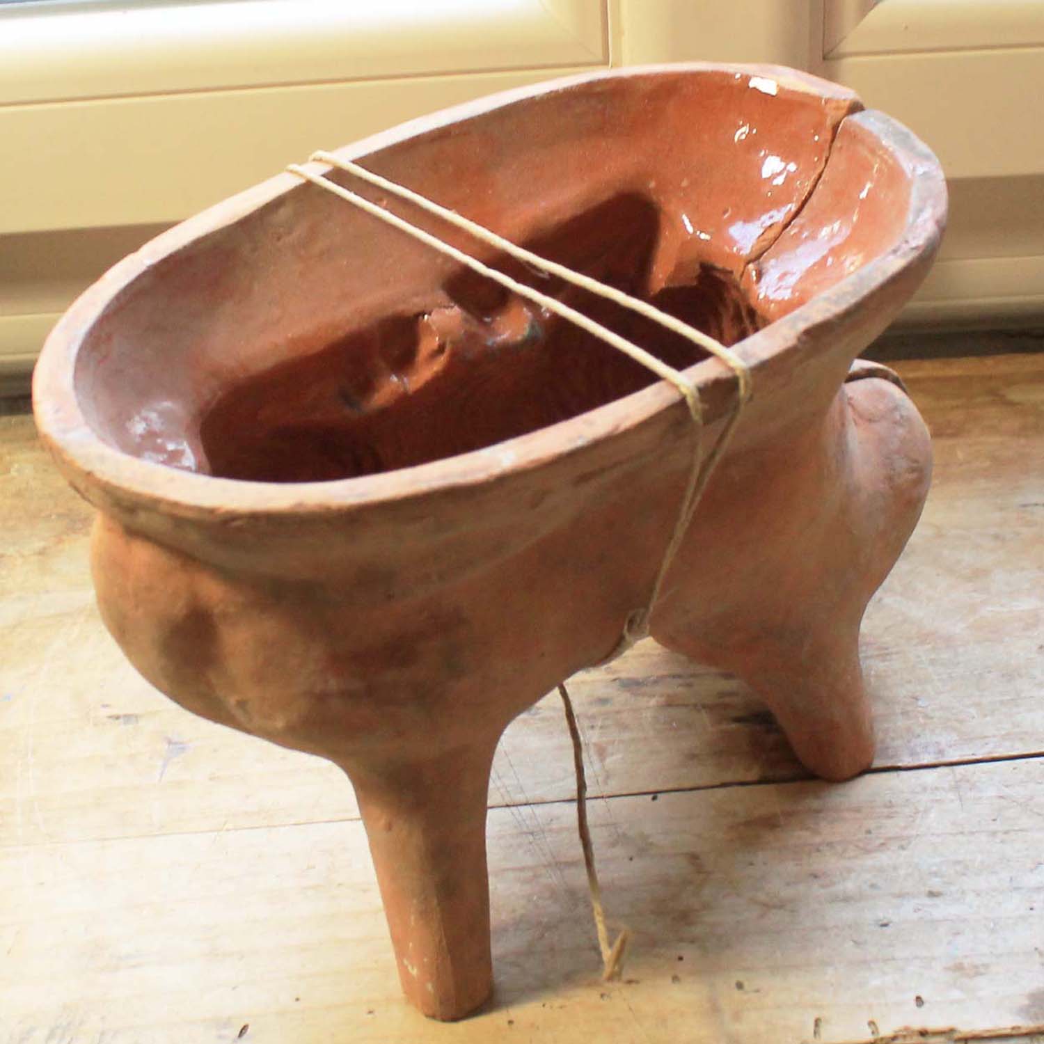 古いアニョーパスカルの型。メーカー名はW. Sieberです。 アニョーパスカルとは、アルザス地方の郷土菓子でイースター(パック)の時に食べるケーキになります。通常は羊の形のケーキで、こちらも羊の形をしています。 古いテラコッタ製なので、欠け、足が一本ありません。状態を鑑みて格安のお値段を付けました。