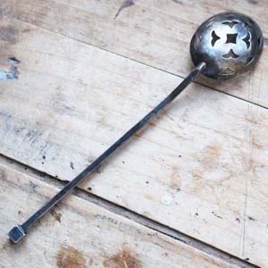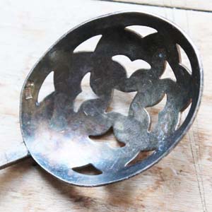 オリーブを取るためのスプーン。古いものなのでシルバープレートの変色などがあります。