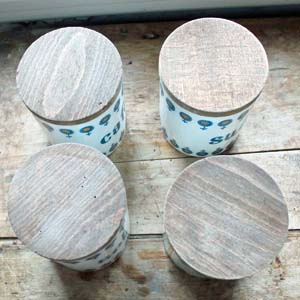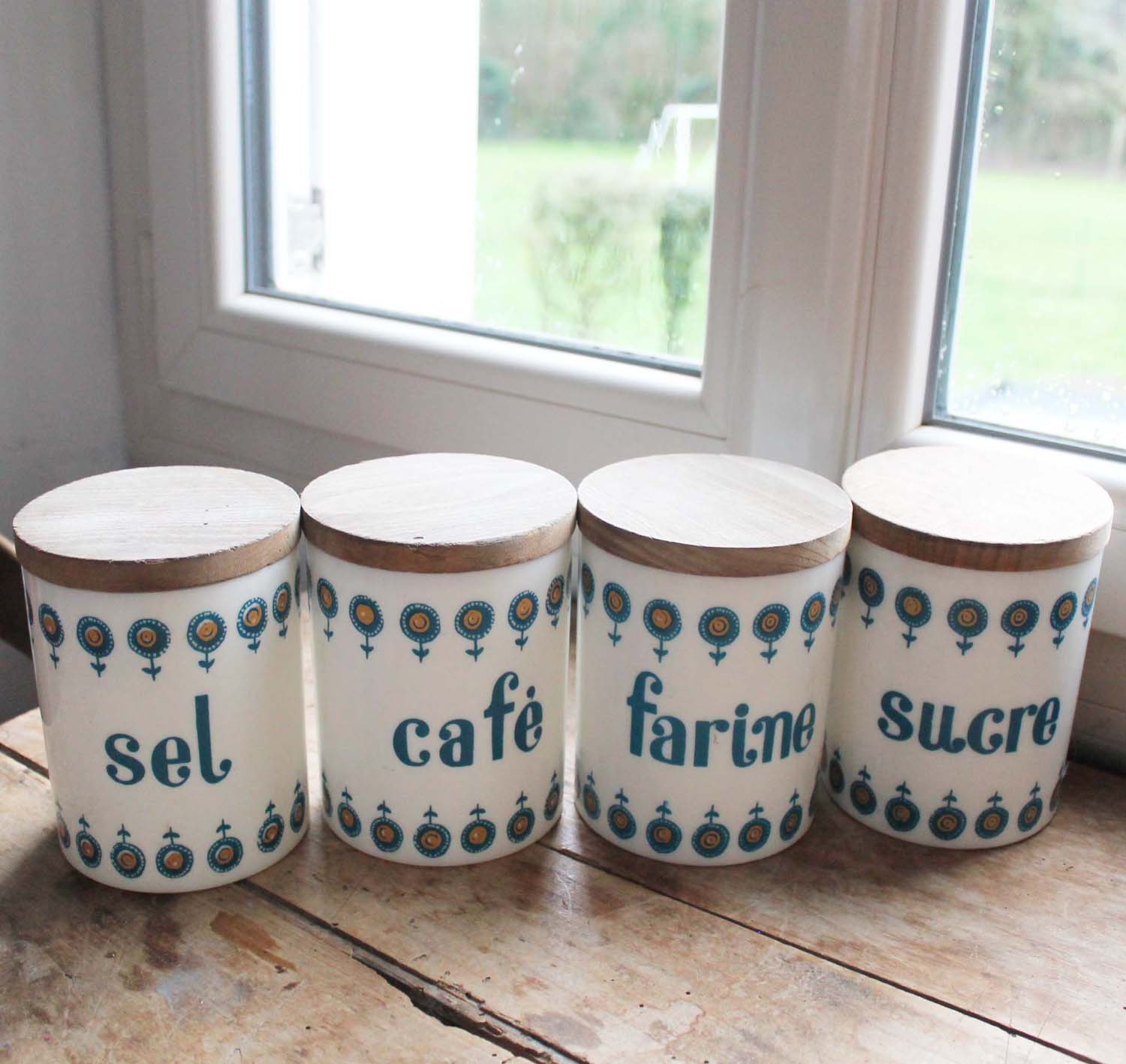 古いプラスティック製のかわいいキャニスター。4つセットです。古いものなので多少の傷、汚れがあります。