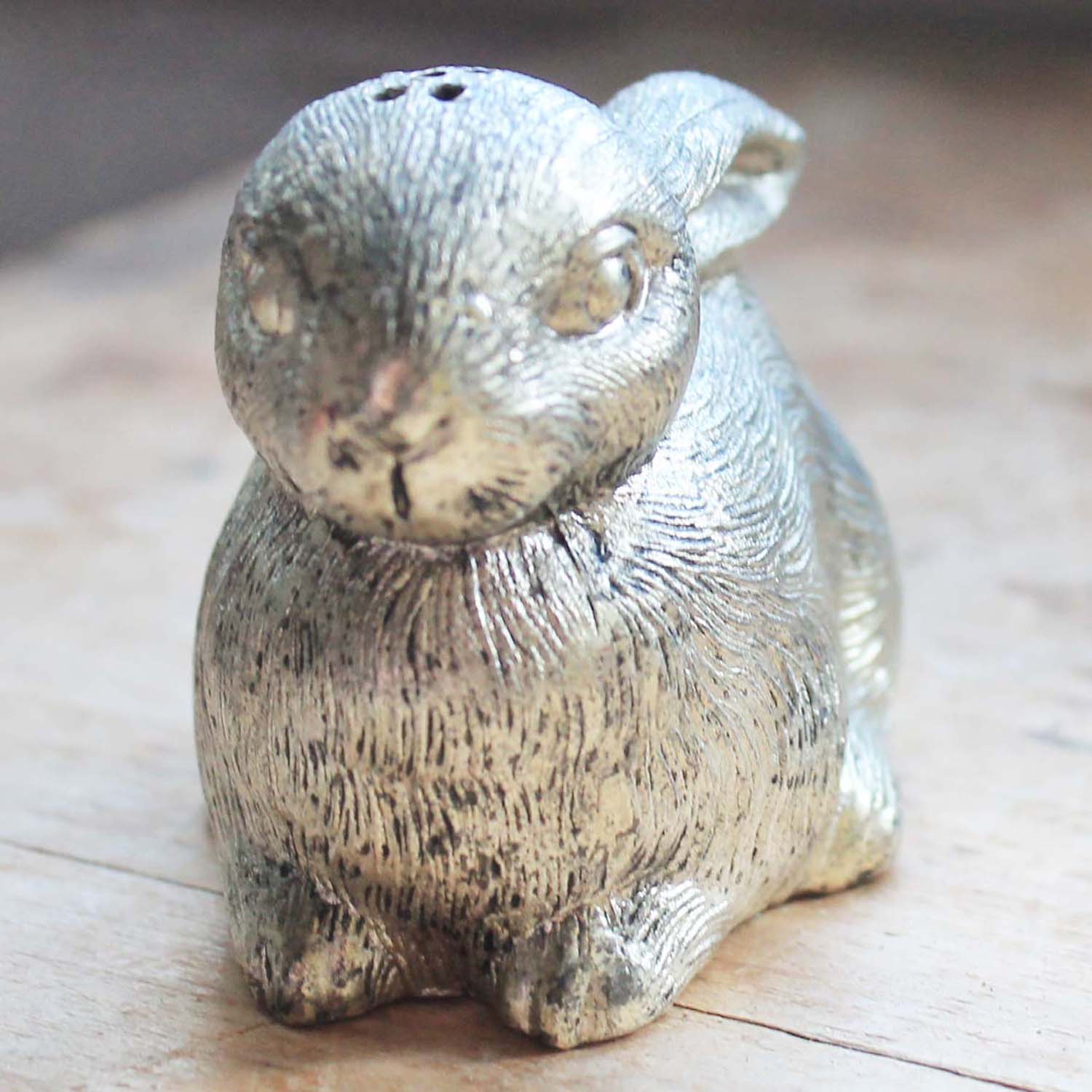 かわいいウサギの形の塩入れ。 金属製です。古いものなので多少の傷、汚れがあります。