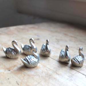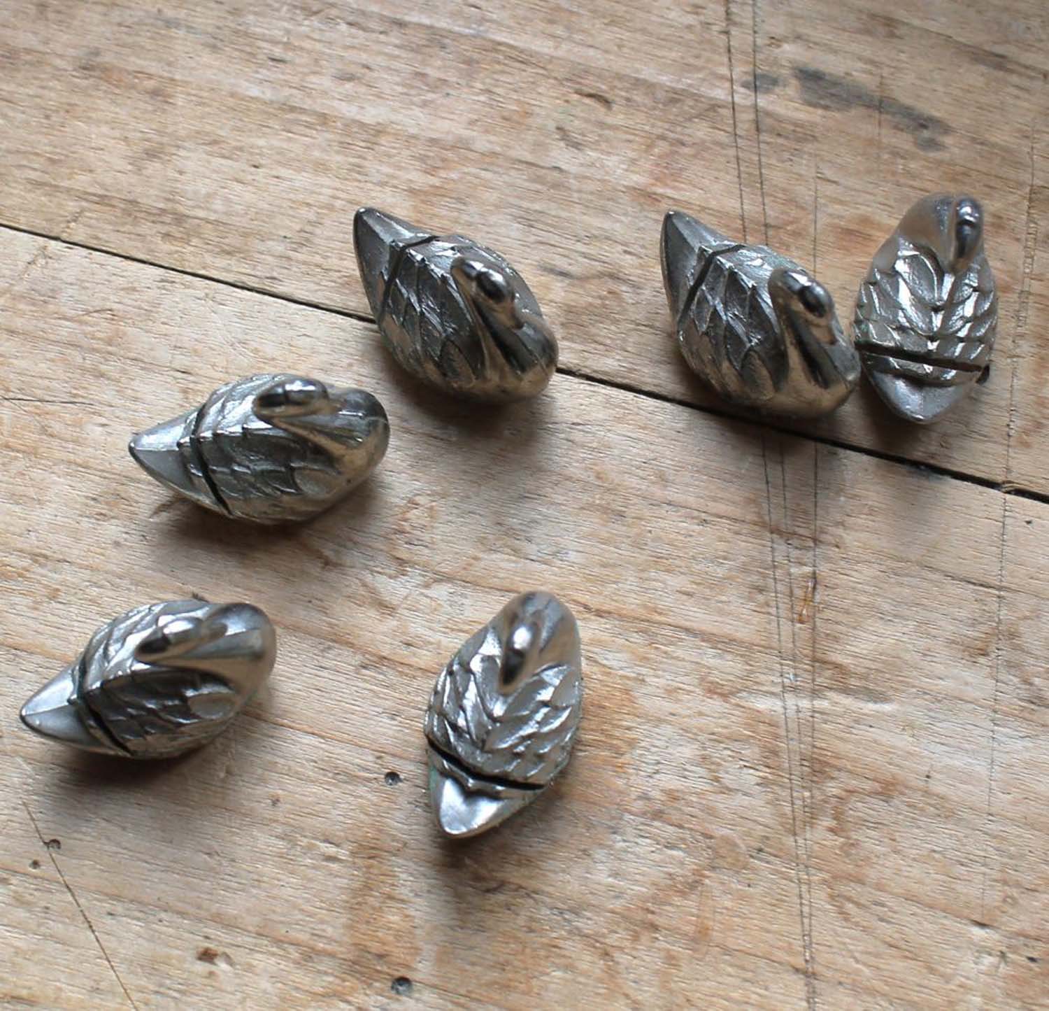古い金属製のカードホルダー。白鳥の形をしています。古いものなので多少の汚れがあります。