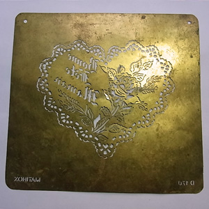 珍しいラベル用のステンシル用シート。 これはたぶん母の日のカード用のものだと思います。レースのハートの絵柄がかわいいです。 数が少ないものなのでまず出てこない商品です。 古いものなので傷、汚れがあります。