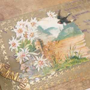 100年以上前の古いポストカードセット。ツバメの絵柄のものはカード自体がベークライト製の珍しいものです。古いものなので多少の汚れ、傷があります。