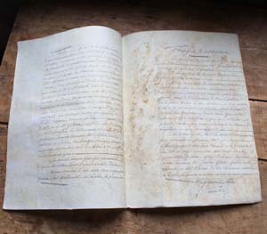 本物の羊皮紙(動物の皮)の古文書。 司法書士の書類の1枚になります。古いものなので多少の傷、汚れがあります。