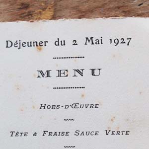 【商品番号】B250066 【商品名】1927年5月2日 パーティー用メニュー 4枚