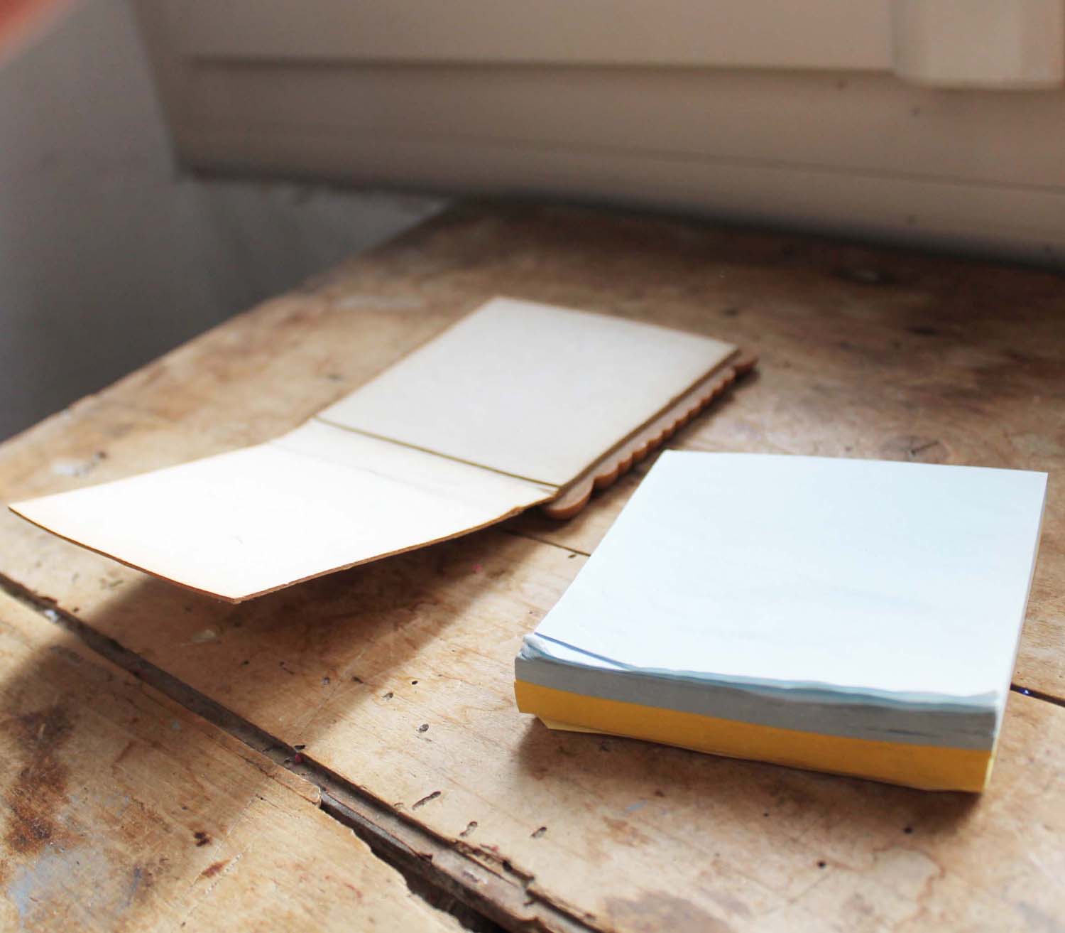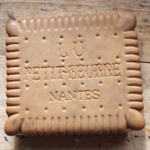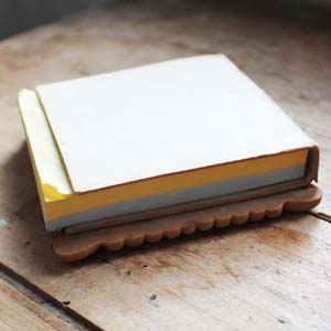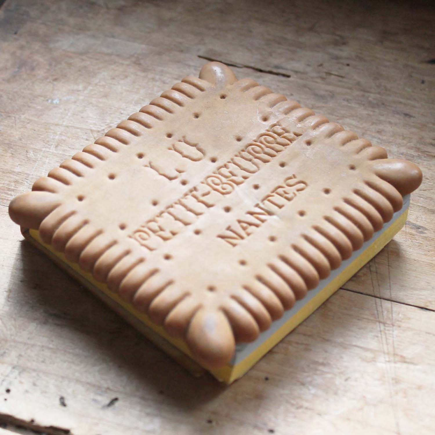 ヴィンテージのメモ帳。LUのビスケット部分はゴム製、メモ部分は紙製です。メモはすでにすべて使われているようで、別のポストイットがついています。古いものなので多少の汚れ、紙のよれがあります。