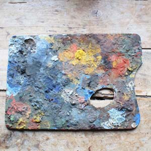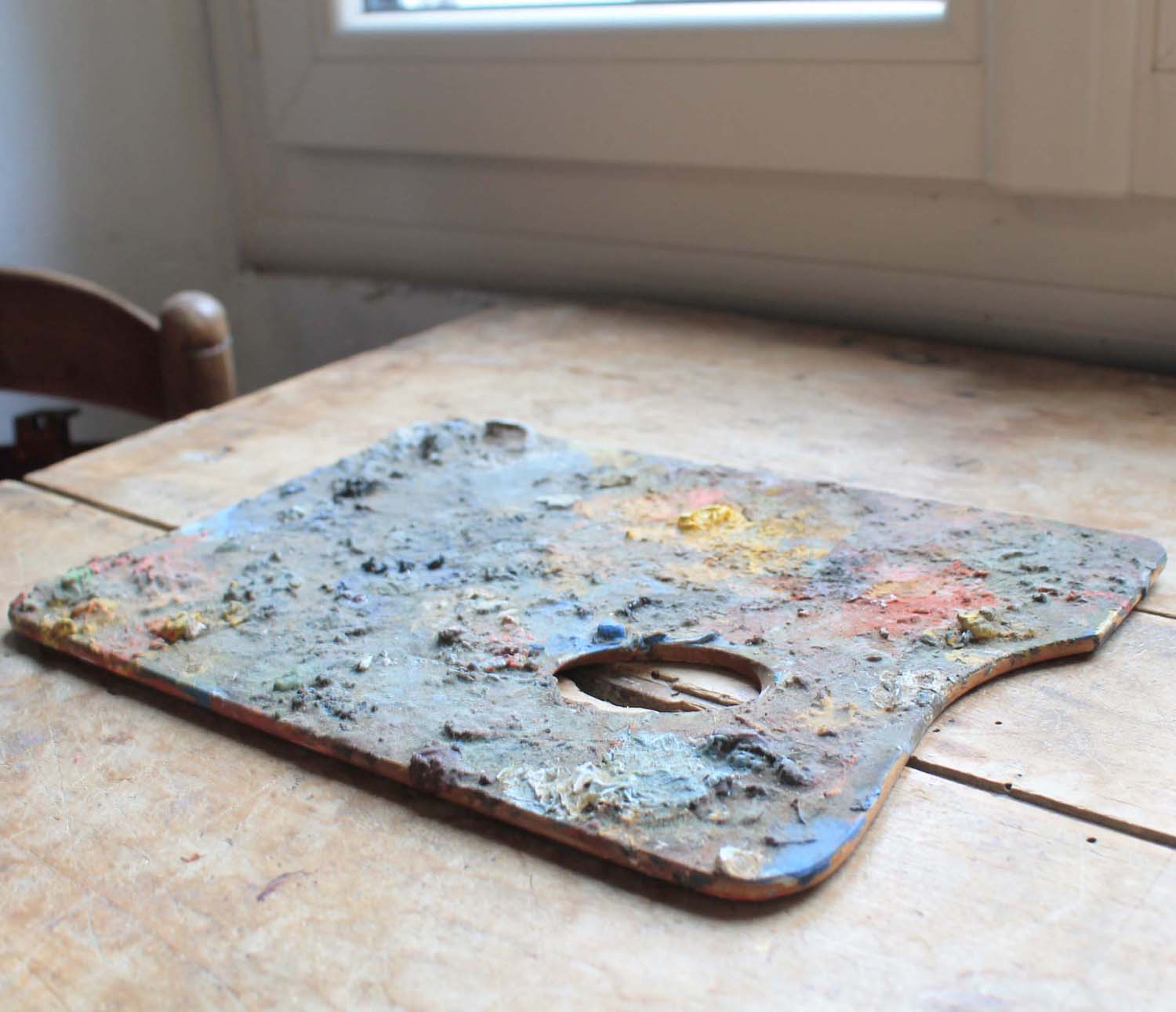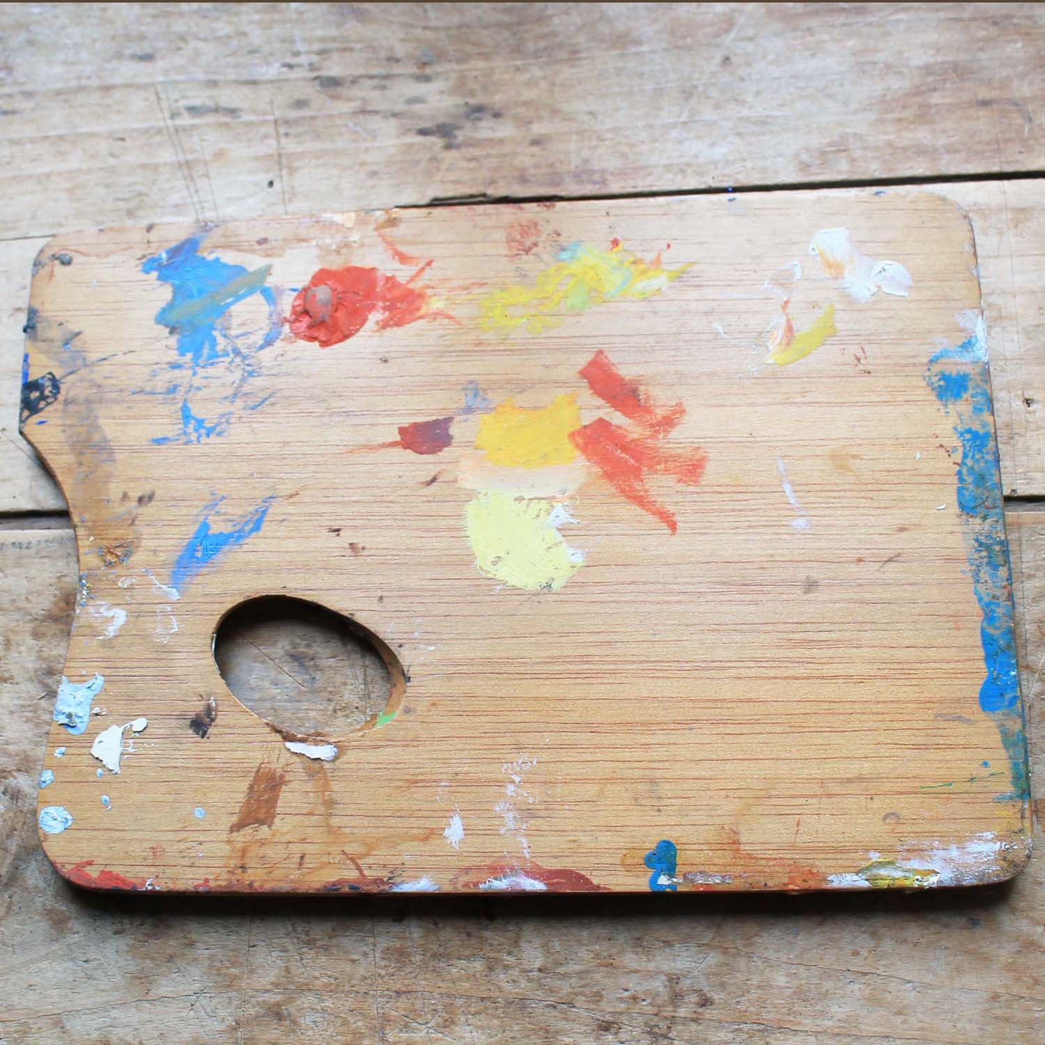 古い油絵用の木製パレット。これだけを壁に飾ってもシックです。古いものなので多少ほこり汚れがあります。