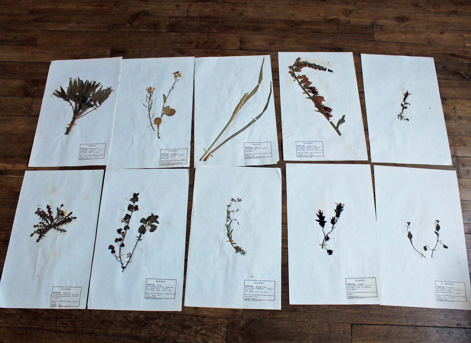 1960年に作られた植物標本。 10枚セットです。1枚1000円以下のお得なセットです。多少の傷、汚れ、植物にダメージがあります。