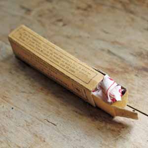 73の布製のイニシャルテープ。 古いものなので箱にダメージがあります。