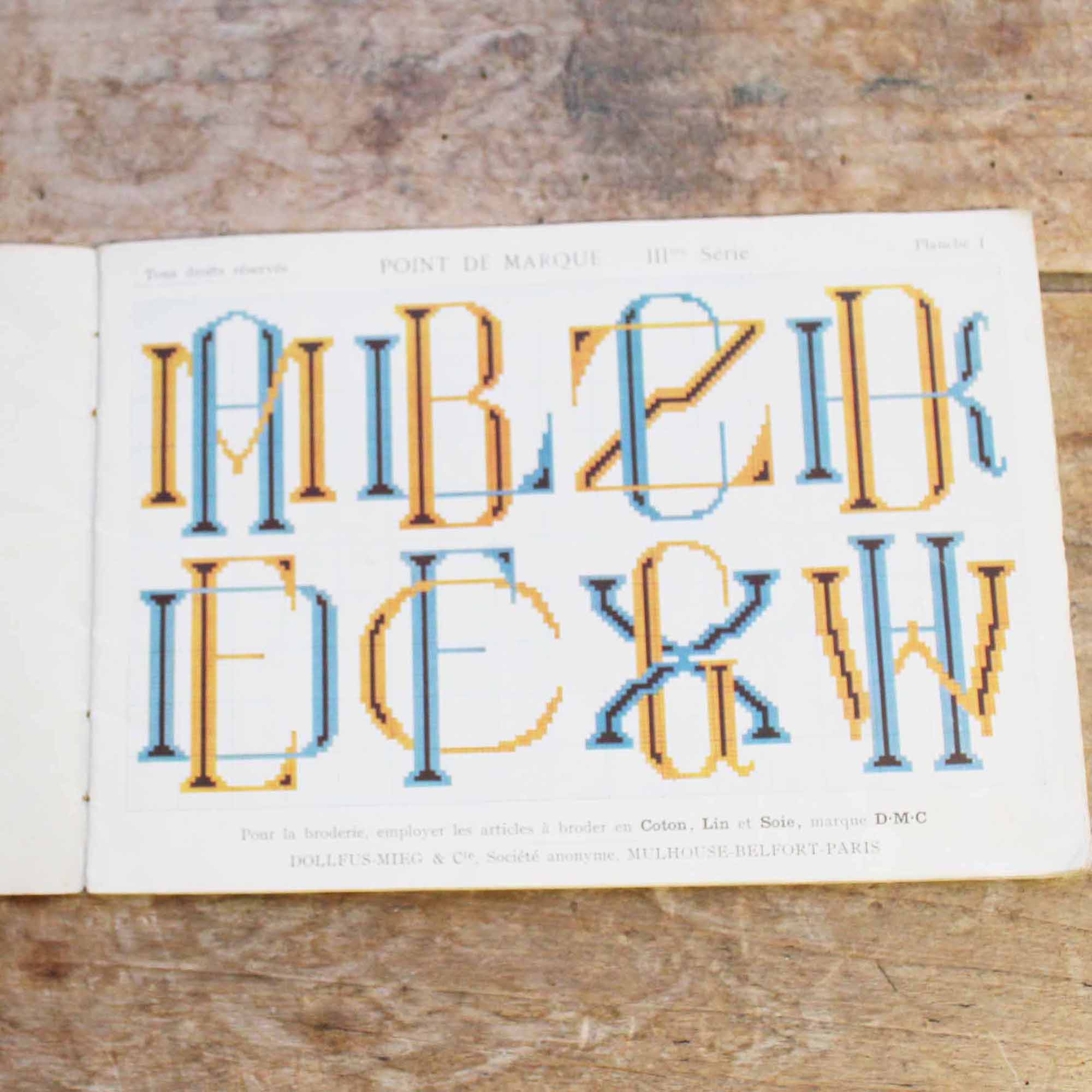 古いDMC製のデザイン本。アルファベットが中心になります。古いものなので多少の傷、汚れがあります。