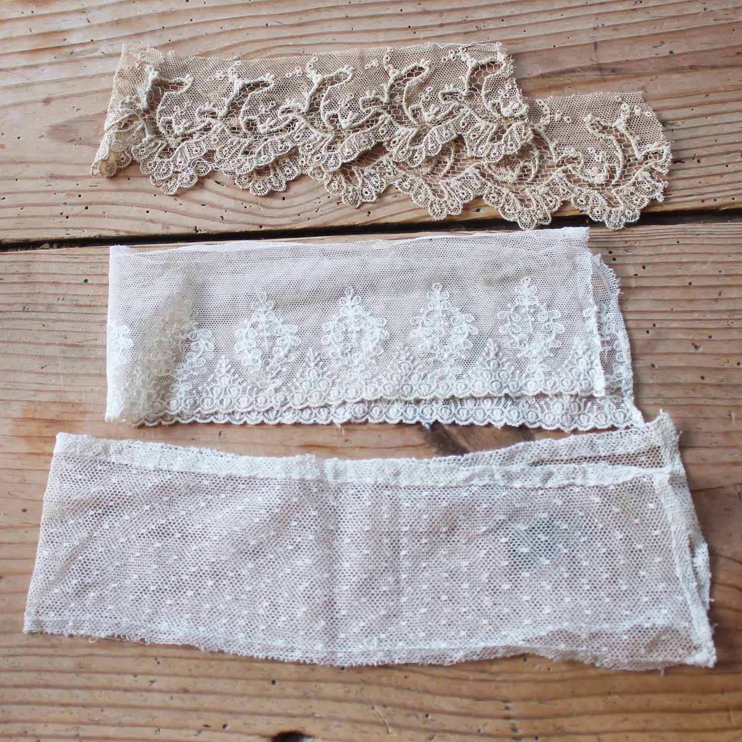 太いレース3種。短めのものです。古いものですが、シミ等ありません。