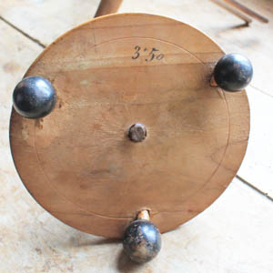 100年以上前の古い木製の糸巻き機。 古いものなので一部に修繕が入っています。裏には手書きの当時の値段も書いてあります。
