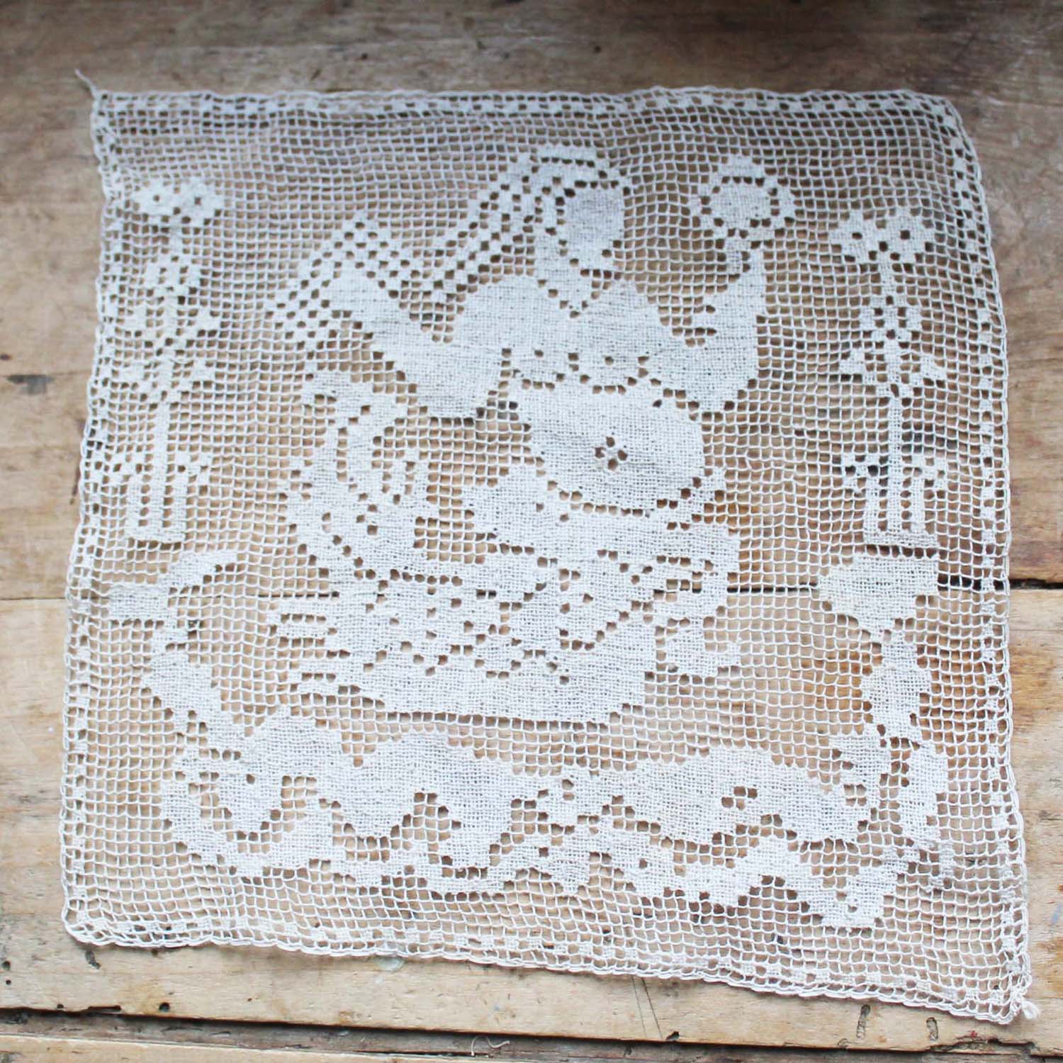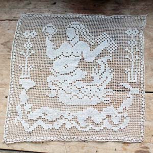 人魚がモチーフのハンドメイドのフィレレース。100年ぐらい前のものです。古いものですがきれいです。