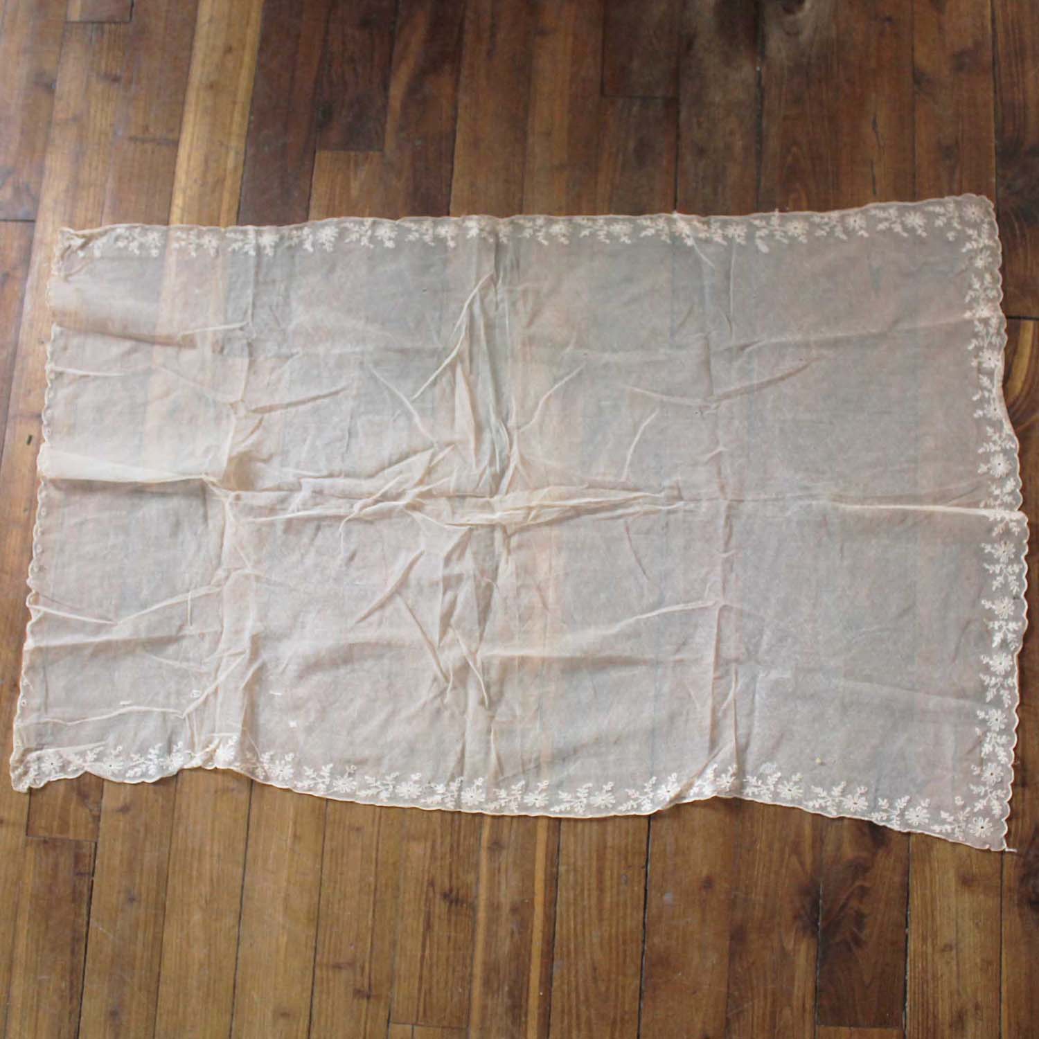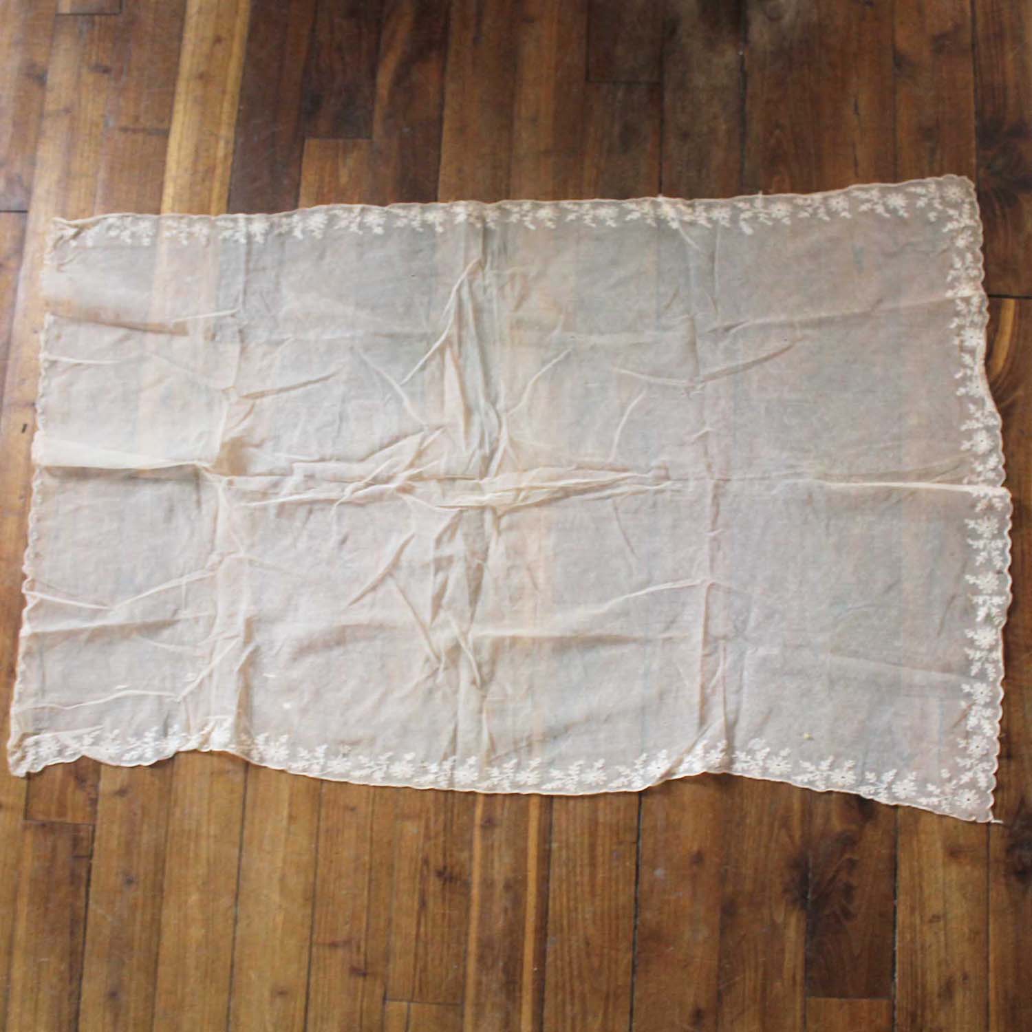 古いレース布。穴、修繕があります。色がピンクベージュでかわいいです。
