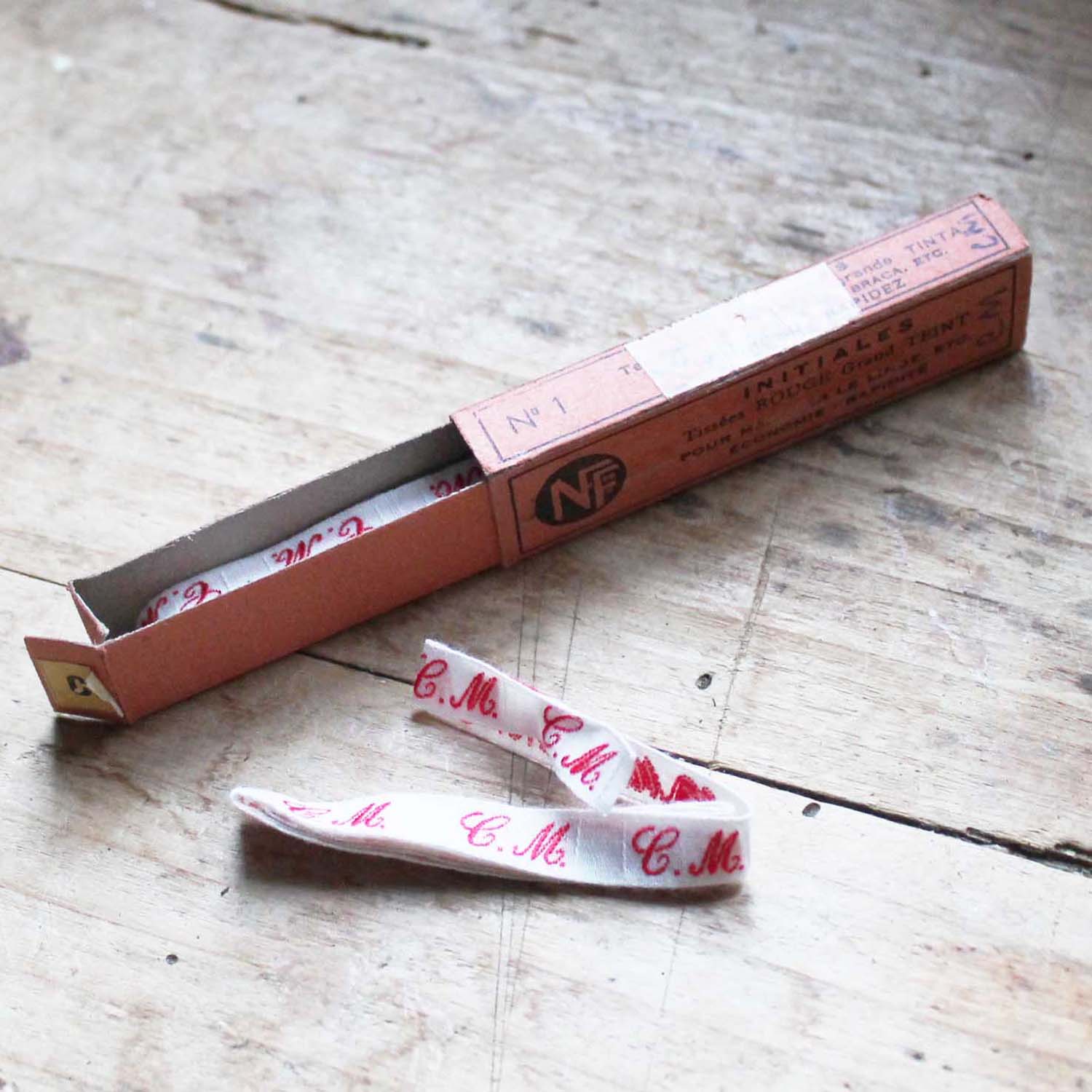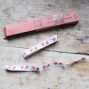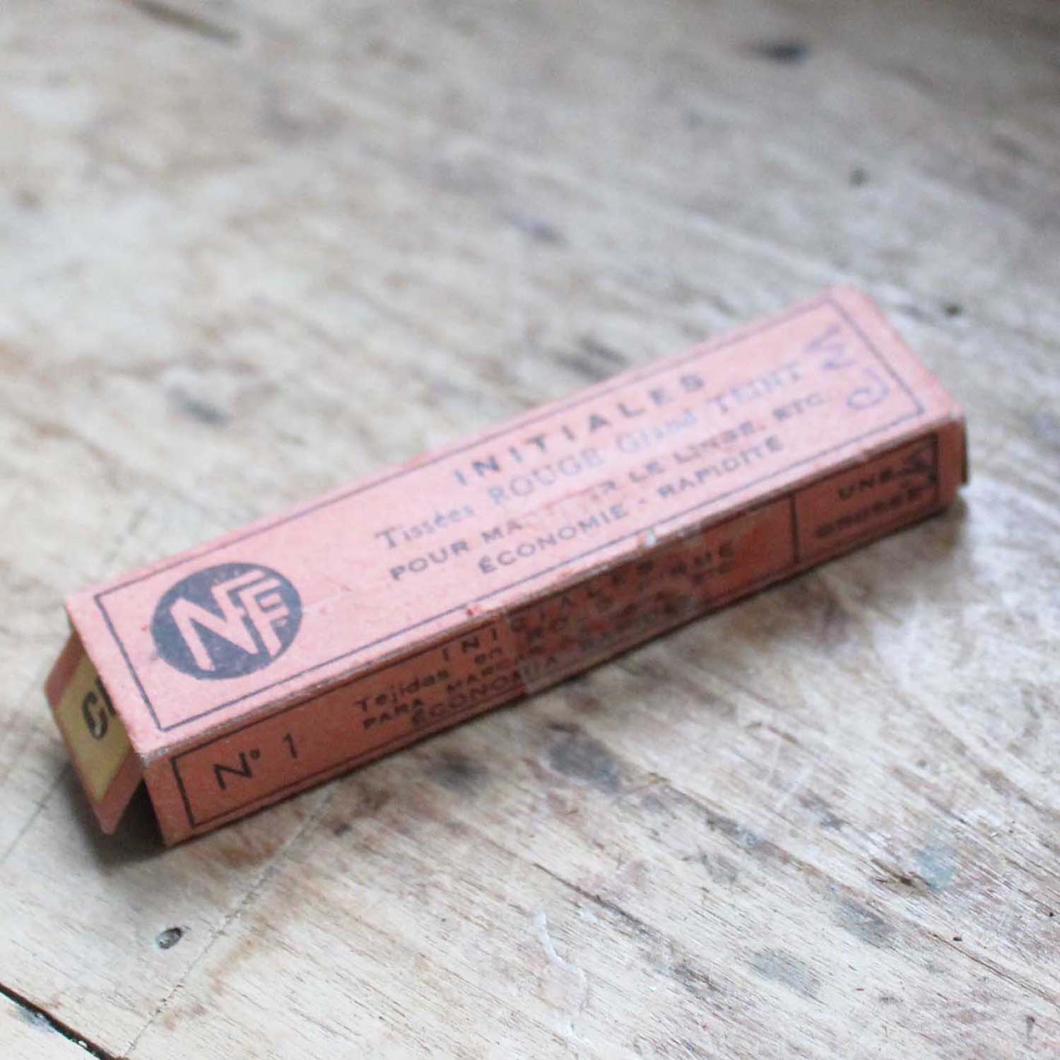 古いイニシャルテープ。 一つは使われています。古いものなので箱にダメージがあります。