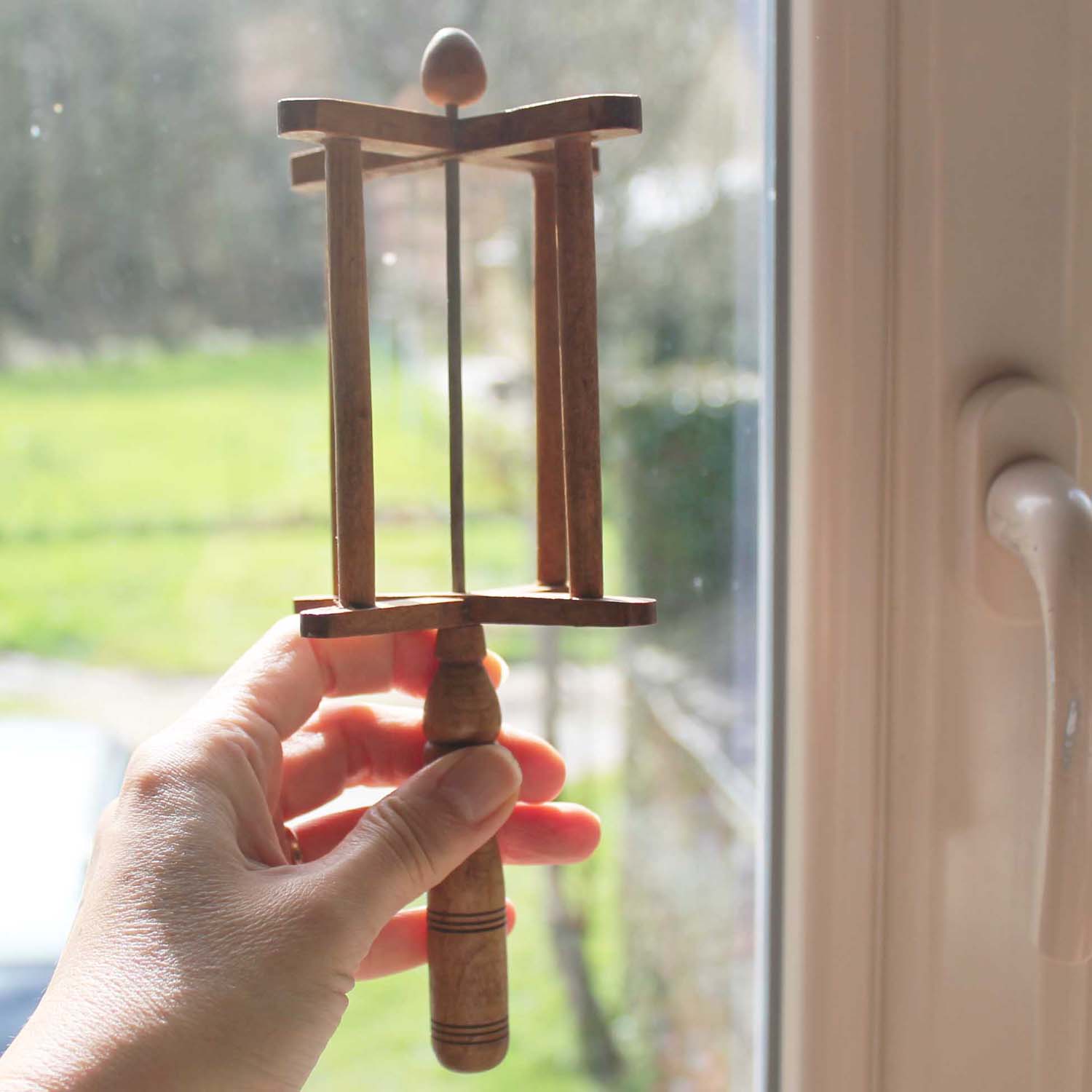 古い木製の糸紬機。古いものなので多少の傷、汚れがあります。