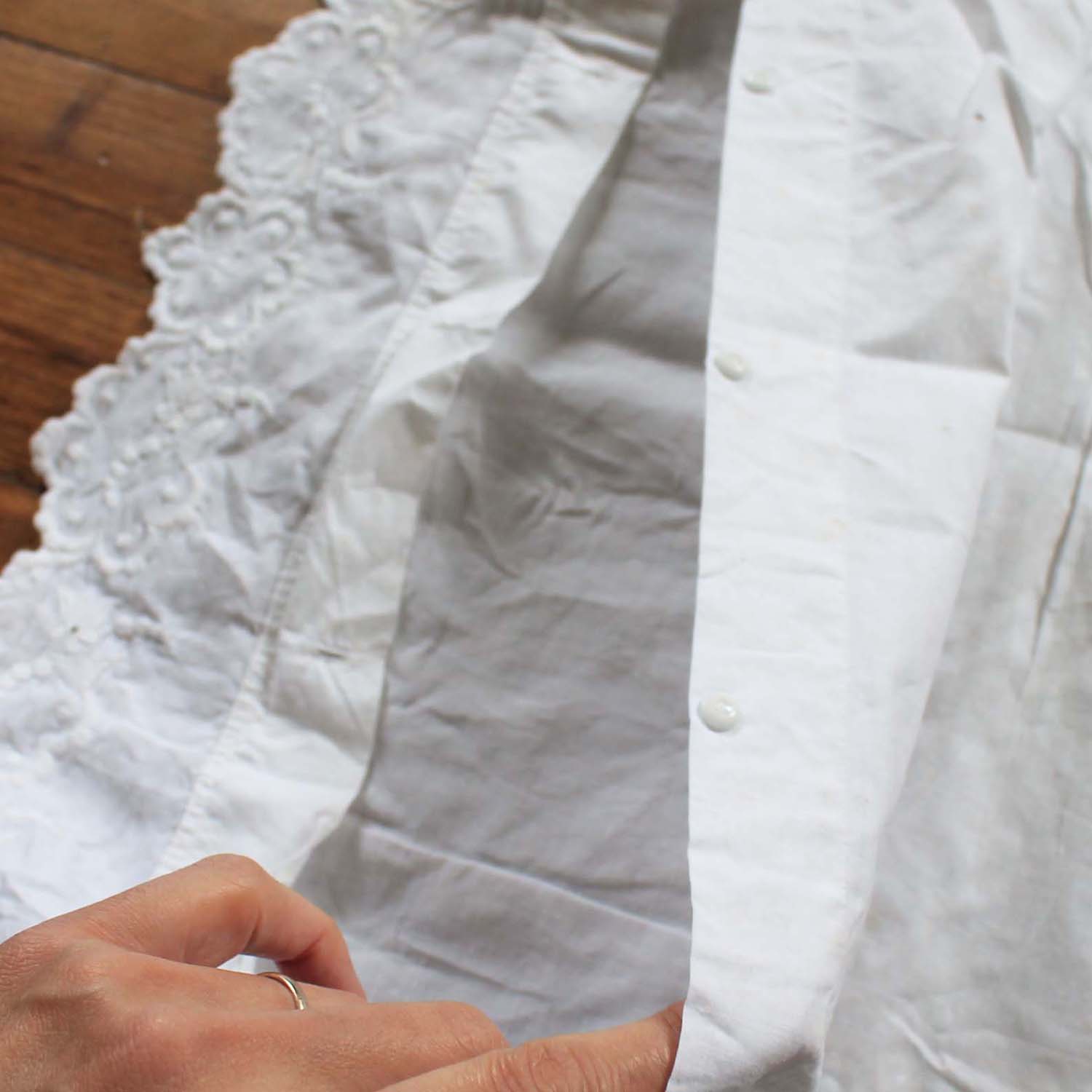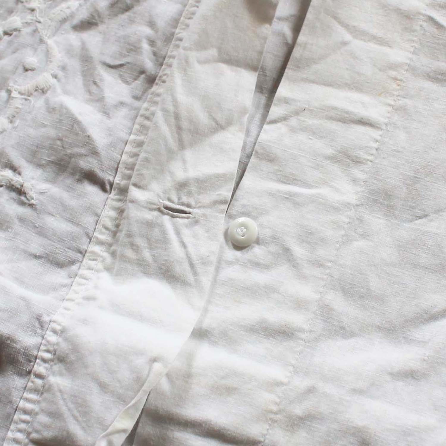 100年以上前の古いクッションカバー。ボタンはミルクグラス製です。古いものなので多少シミがあります。