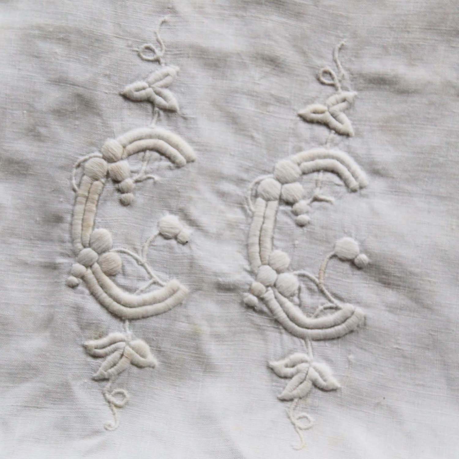 【商品番号】S260052 【商品名】19世紀後期 コットン製 クッションカバー イニシャルモチーフ付き